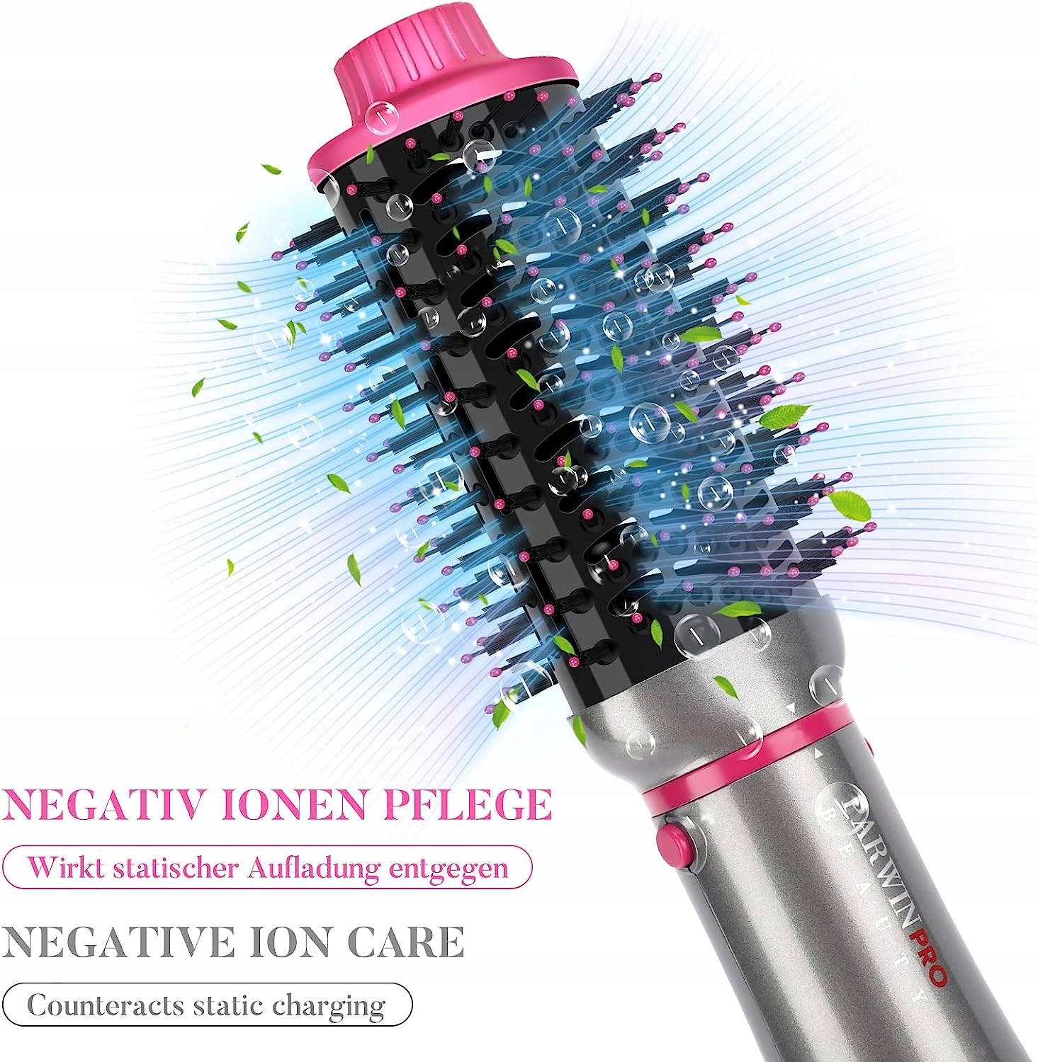 ION CARE --- Набор щеток для сушки волос с технологией отрицательных ионов, встроенный генератор ионов высвобождает отрицательные ионы, активно противодействует статическим зарядам за счет эффекта разглаживания волос и придает дополнительный блеск во время сушки волос. Снижает статический заряд волос и обеспечивает больший объем.