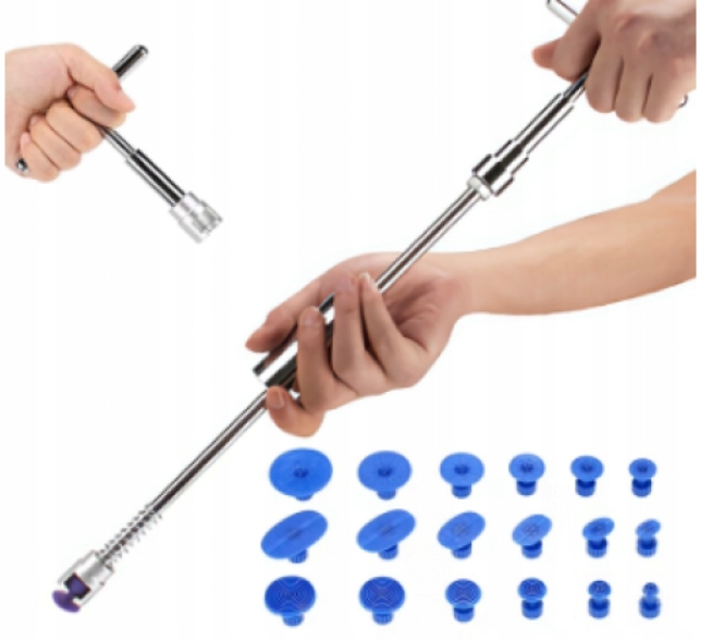 Приспособление для удаления вмятин на кузове автомобиля. Набор, необходимый в каждом гараже и мастерской! Он дает возможность легкого и эффективного удаления вмятин. Прибор изготовлен из высококачественных материалов, с вниманием к деталям и точностью изготовления, гарантирующими длительную и эффективную работу инструмента.