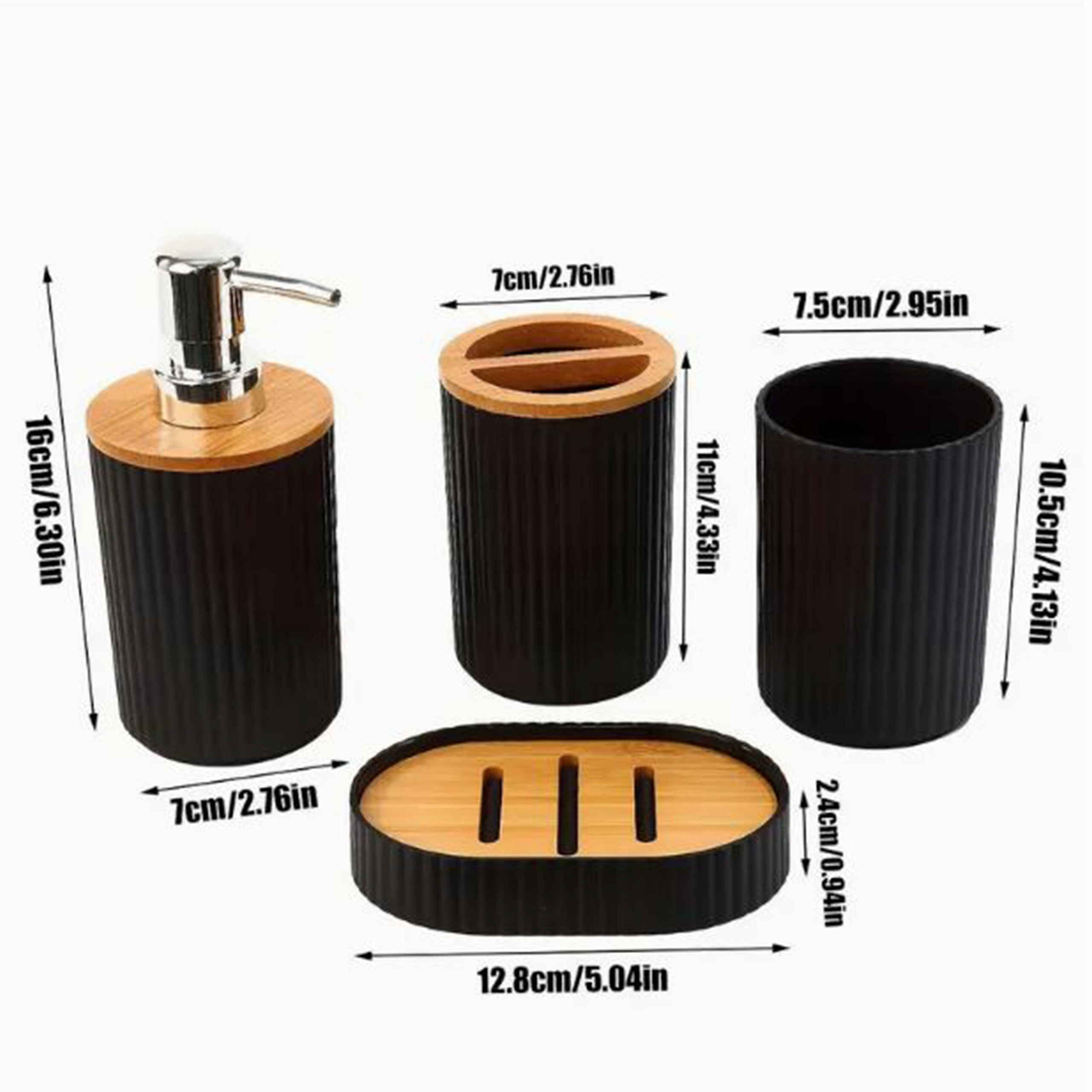 Наш набор аксессуаров для ванной комнаты из 4 предметов — идеальное решение для тех, кто ценит сочетание стиля и функциональности. Позаботьтесь о порядке, гигиене и элегантном внешнем виде вашей ванной комнаты уже сегодня, выбрав наш продукт. Благодаря этому ваша ванная комната станет местом, где ежедневная гигиена станет настоящим удовольствием.