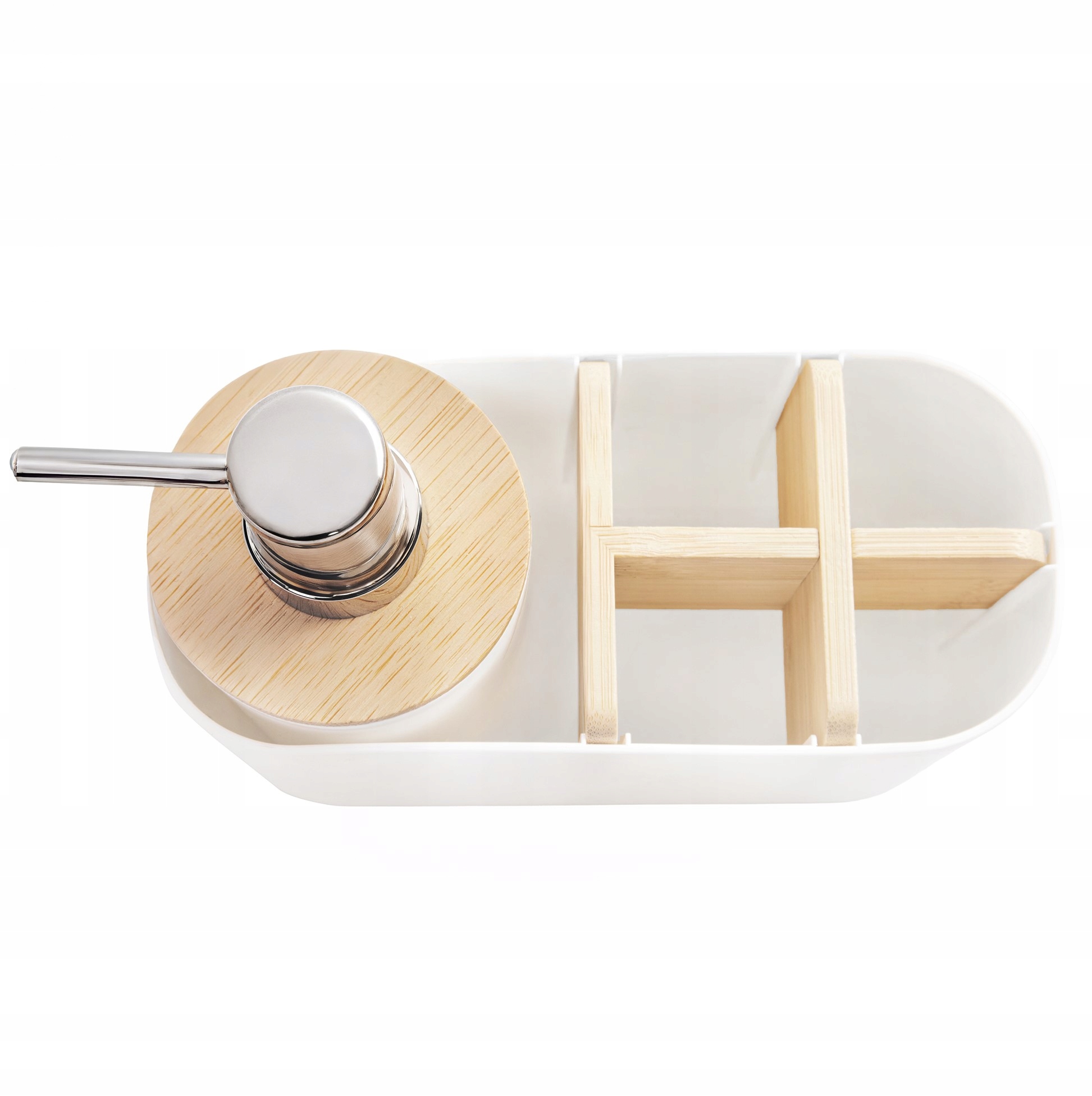 Набор для ванной комнаты YOKA HOME 2в1 - из ПВХ, детали из бамбука, дозатор мыла и контейнер для щеток