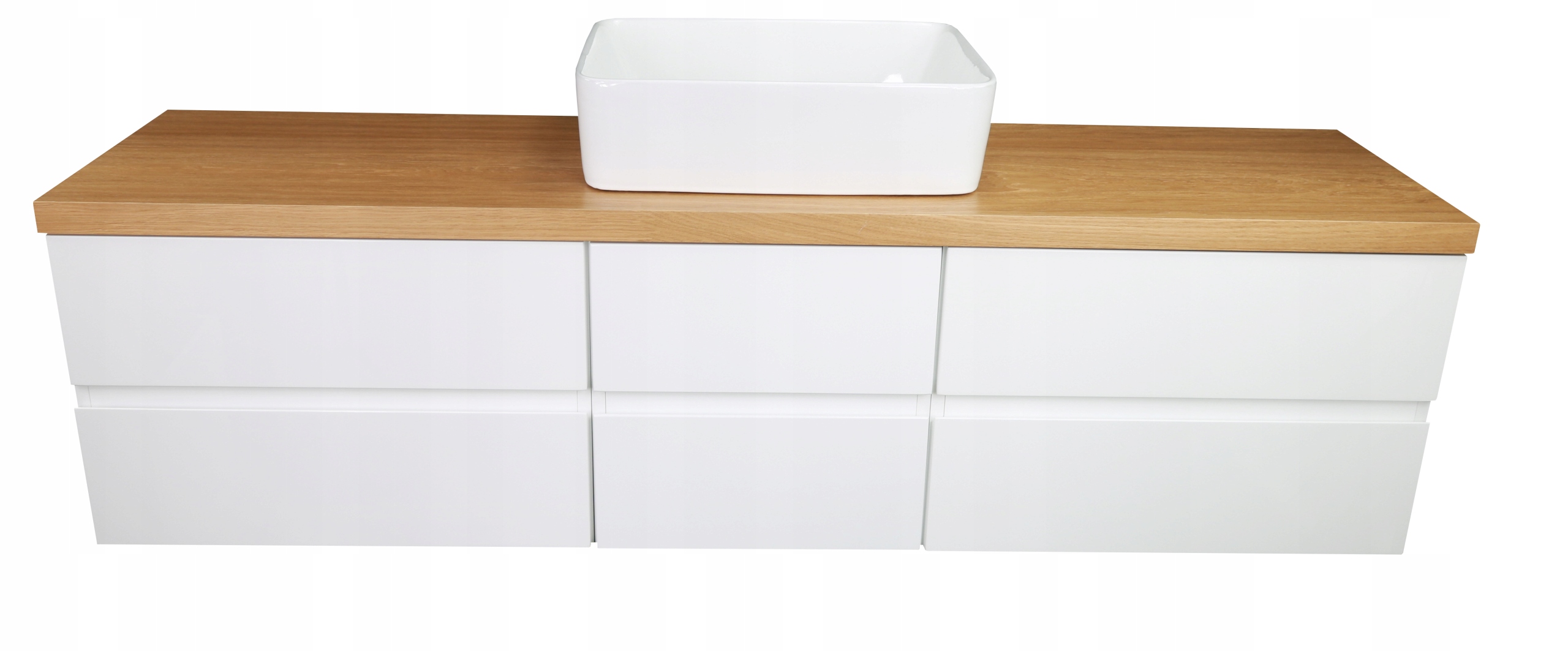 ПОЛНЫЙ, подвесной комплект для ванной комнаты под умывальник со столешницей из дуба.
