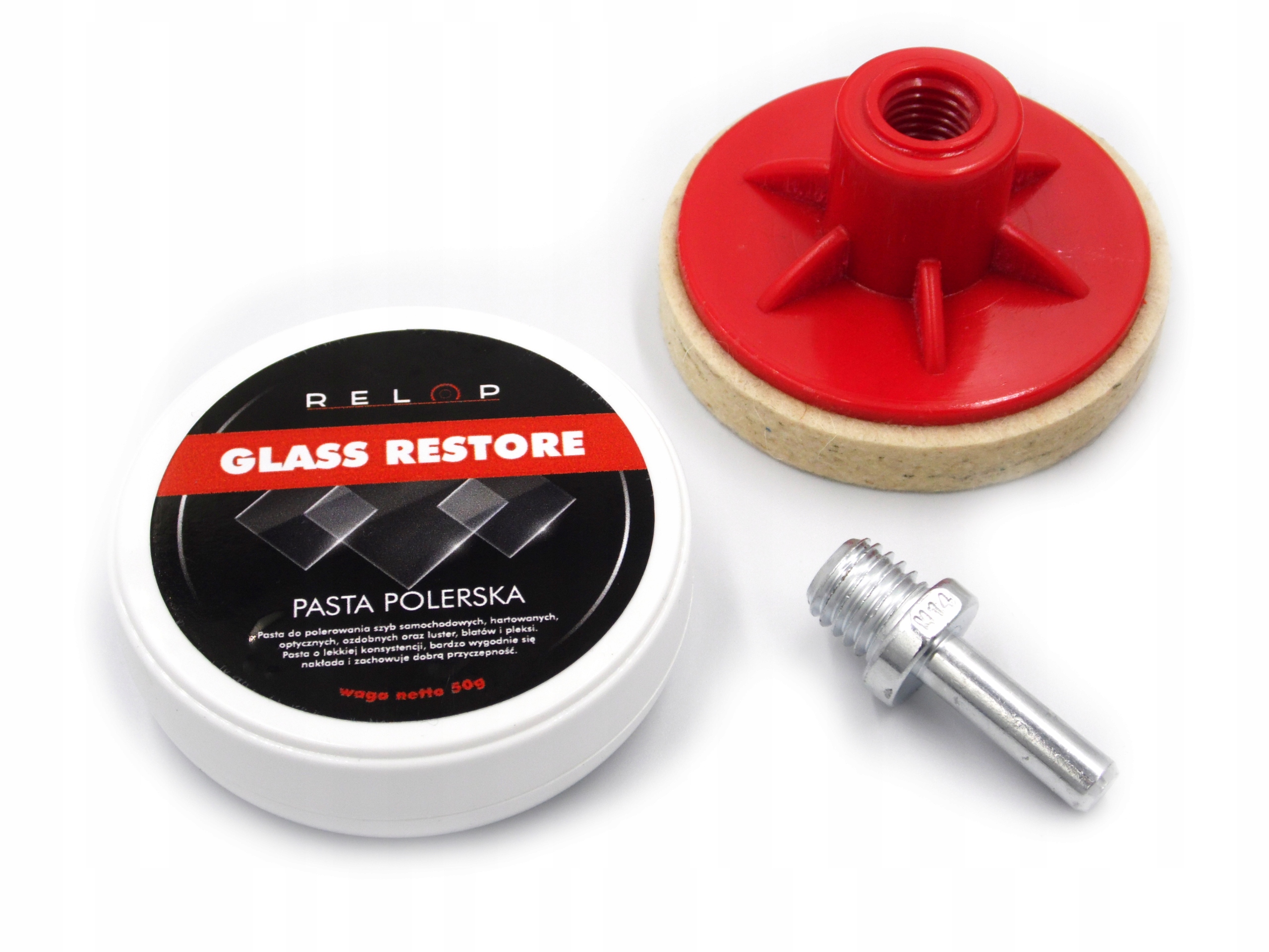 Базовым компонентом нашего набора является паста GLASS RESTORE, используемая в стекольной и автомобильной промышленности. Незаменим также в строительной отрасли и отделочной отрасли для полировки стекла.