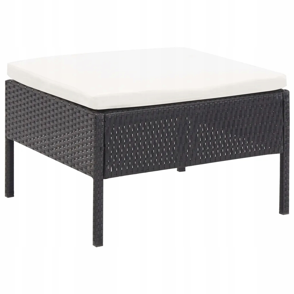Цвет: черный; Цвет подушек: кремовый; Материал: полиротанг, сталь с порошковым покрытием; Материал подушки: 100 % полиэстер.