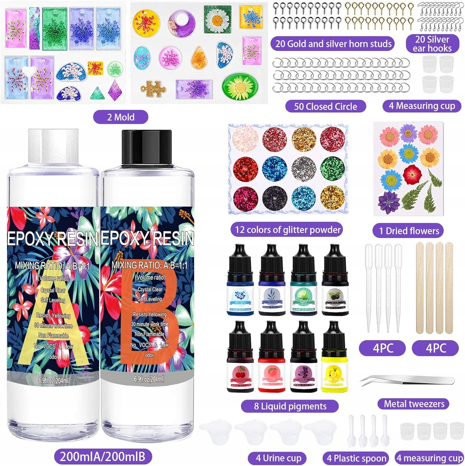Этот комплект для литья смолы включает в себя богатый набор аксессуаров, которые позволят вам немедленно приступить к работе. Здесь вы найдете все, что вам нужно, от силиконовых форм до разнообразных пигментов и блесток, а также подробные инструкции, которые помогут вам сделать первые шаги.