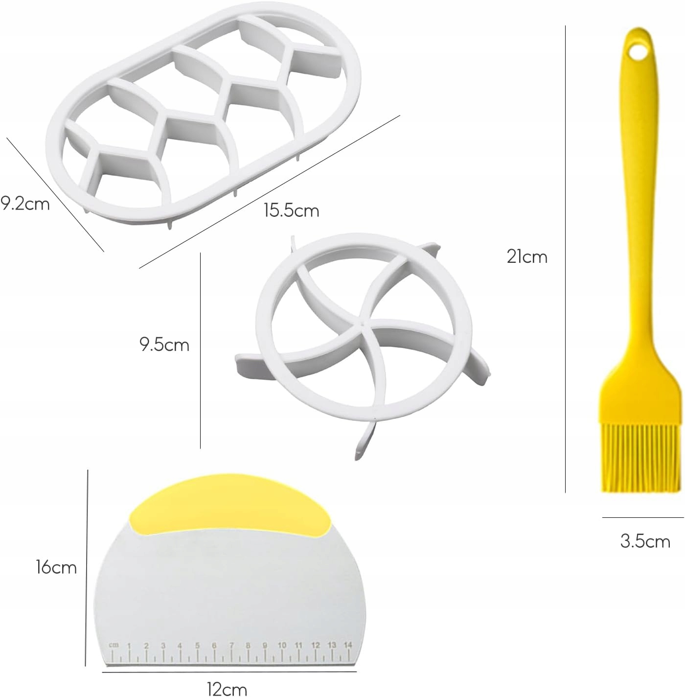 Нож-скребок: В комплект также входит нож-скребок, который облегчает формование и нарезку теста. Он идеально подходит для удобного перекладывания теста и точного разделения.