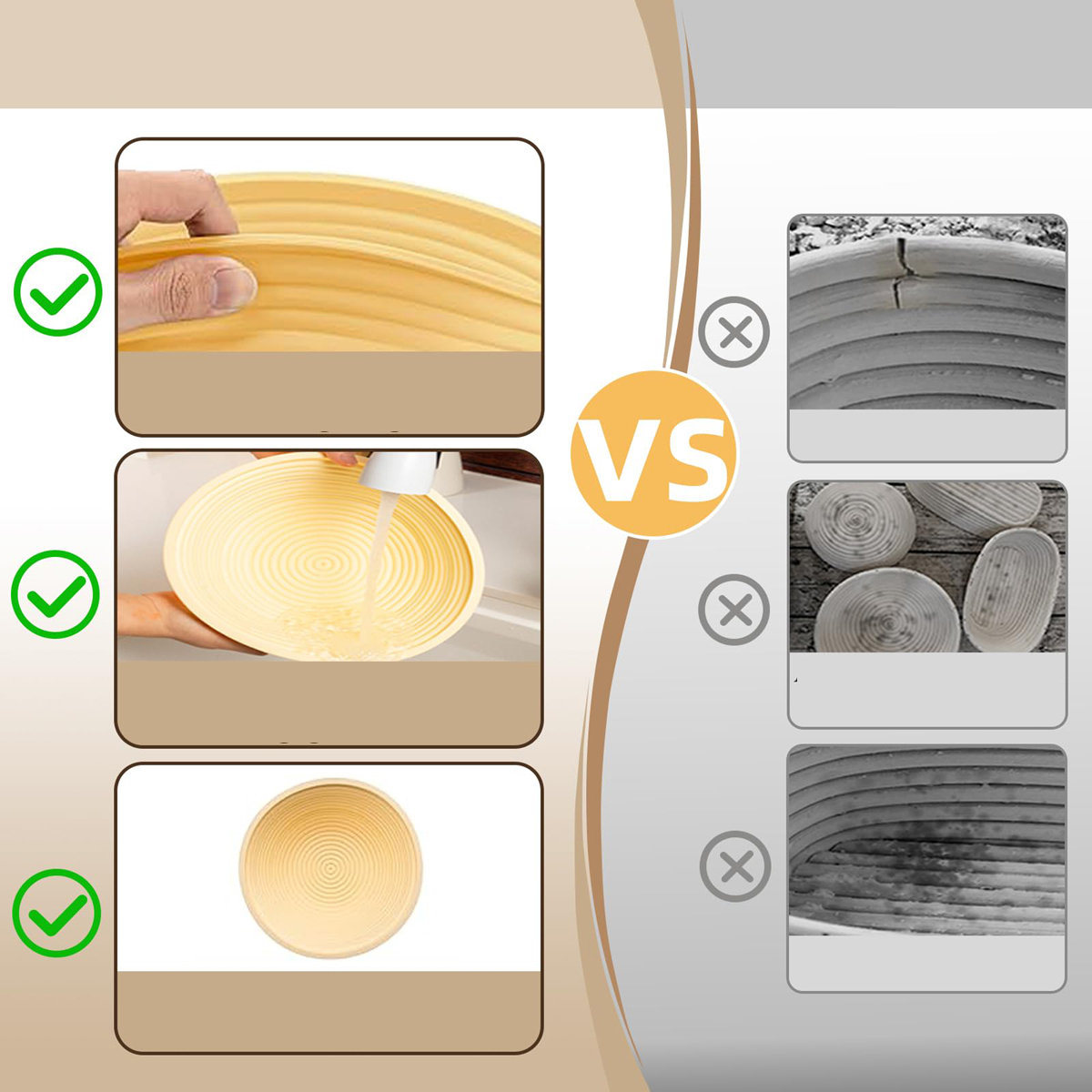 🥐🥐🥐【Длительное брожение корзина】Корзина для брожения является важным элементом процесса выпечки хлеба, поскольку она позволяет тесту бродить и приобретать свой уникальный вкус и текстуру. Пищевой силикон, не содержит BPA, не имеет запаха, безопасен в использовании, хорошо формуется, имеет красивый внешний вид, подлежит вторичной переработке, долговечен, не легко формуется.