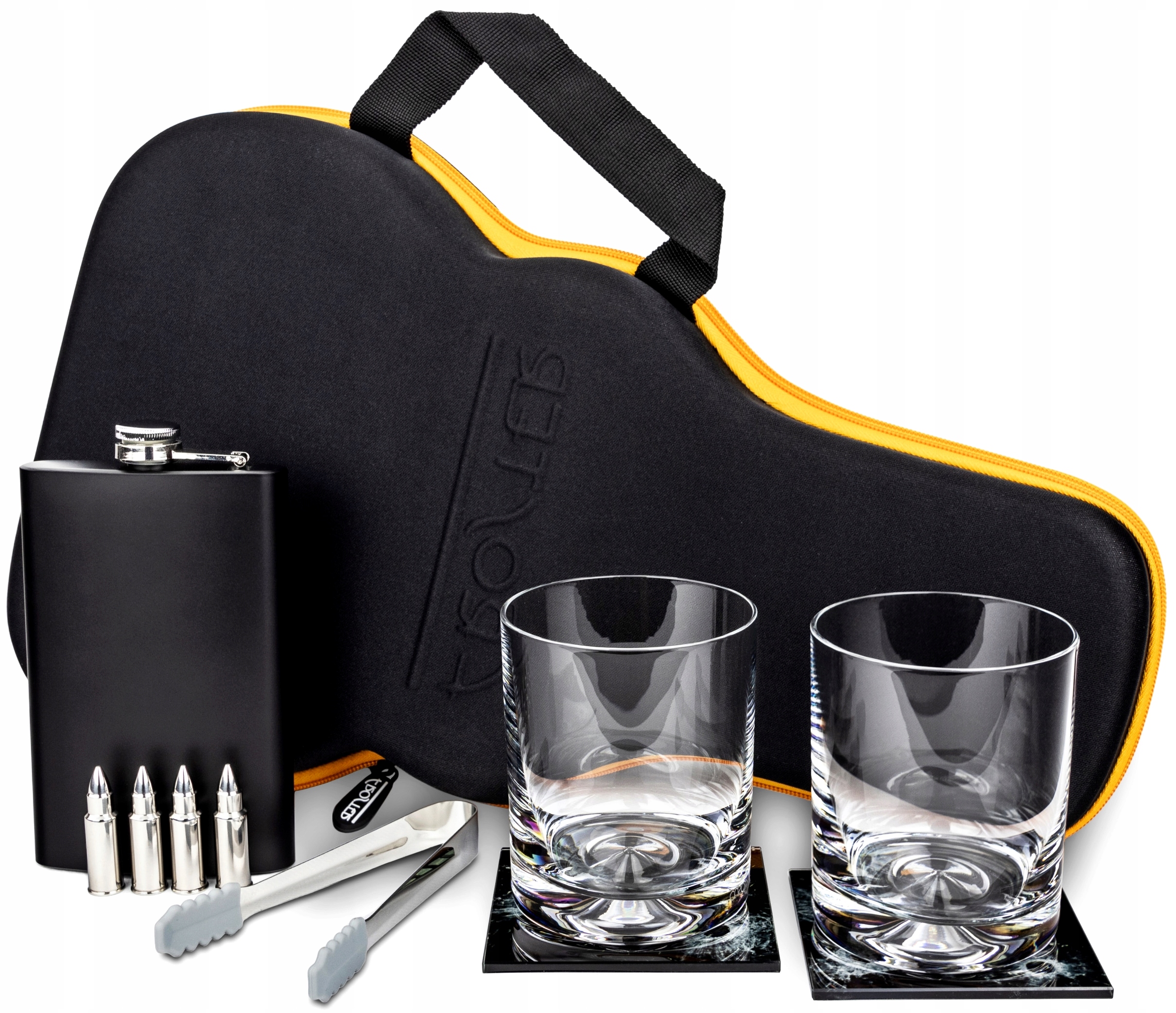Благодаря этому набор можно легко взять с собой в поездку и таким образом обеспечить подходящую обстановку для распития виски для двух человек. Даже находясь вдали от дома, вы можете разделить с кем-то удовольствие от распития охлажденного виски.