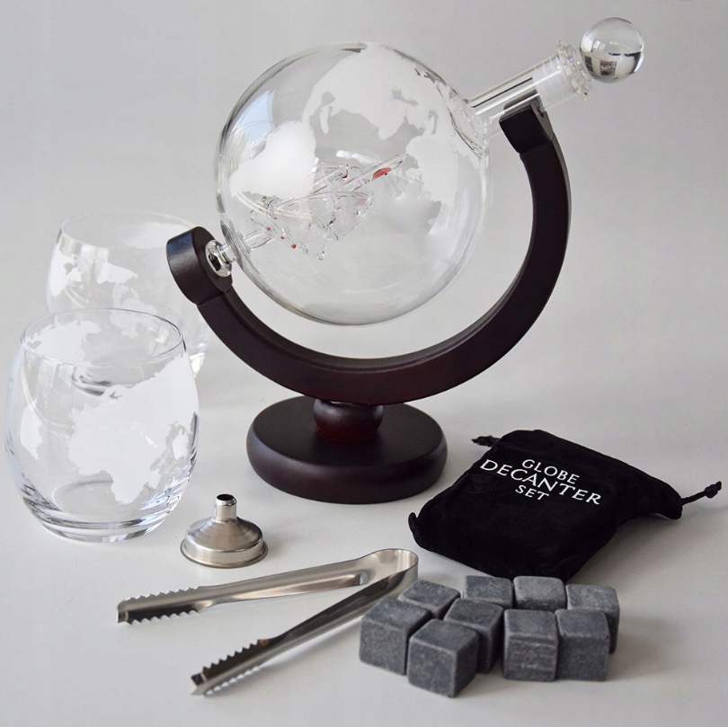 ✔ Графин для виски в форме глобуса с кораблем внутри и выгравированной картой мира!Дерево