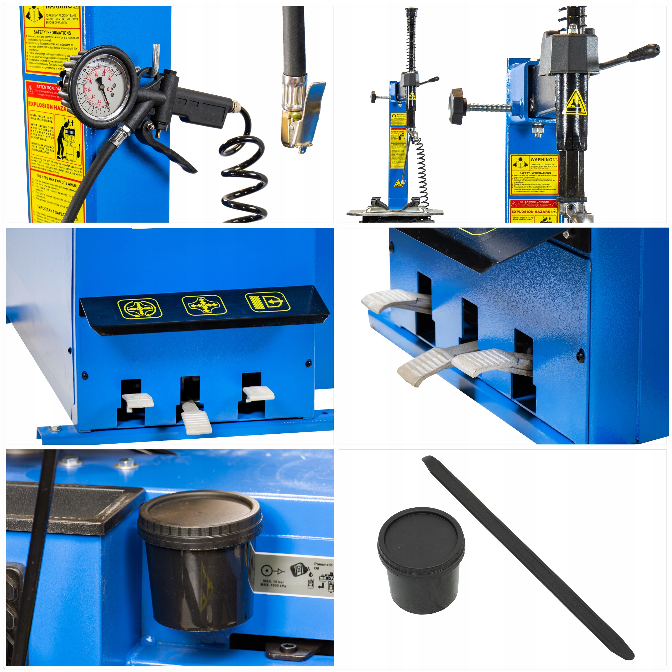 Дополнительно оснащен дегидратором, масленкой с пистолетом для накачки шин и педали управления.
