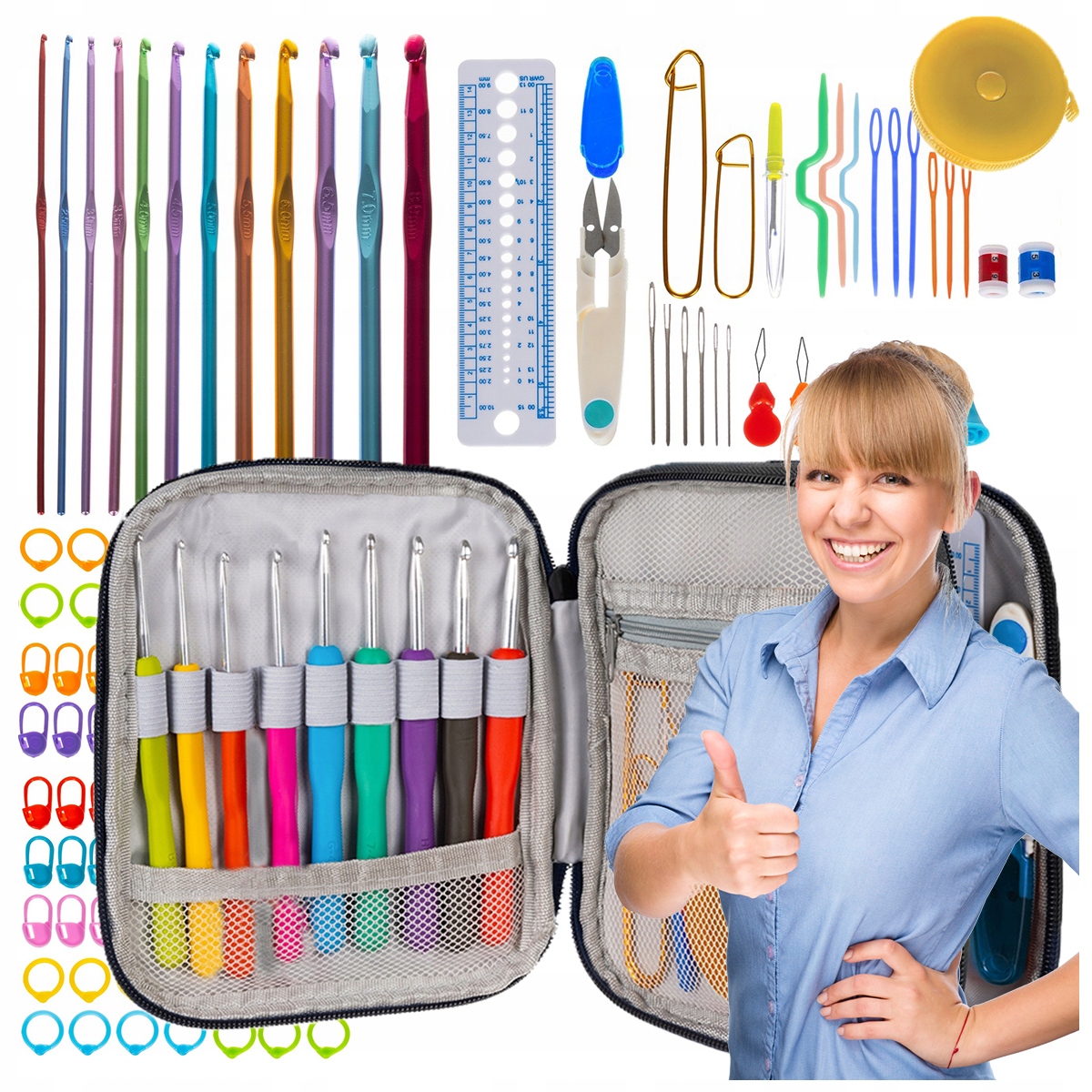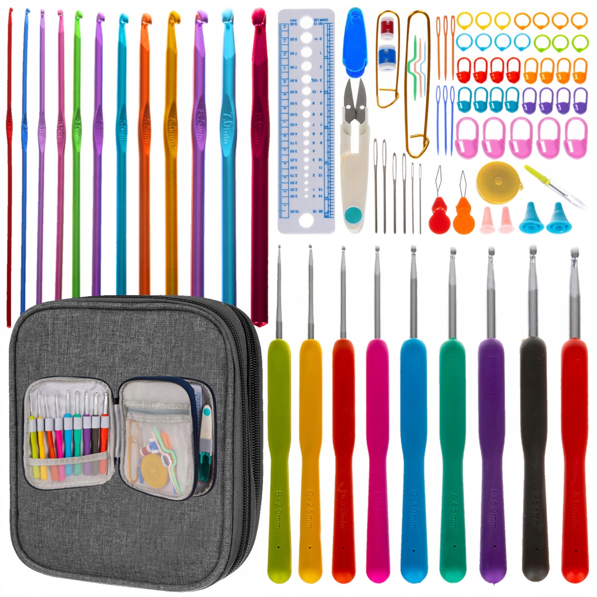 БОЛЬШОЙ НАБОР ДЛЯ ВЯЗАНИЯ КРЮЧКОМ 2,0-8,0, 86 ЭЛЕМЕНТОВ + ЧЕХОЛ