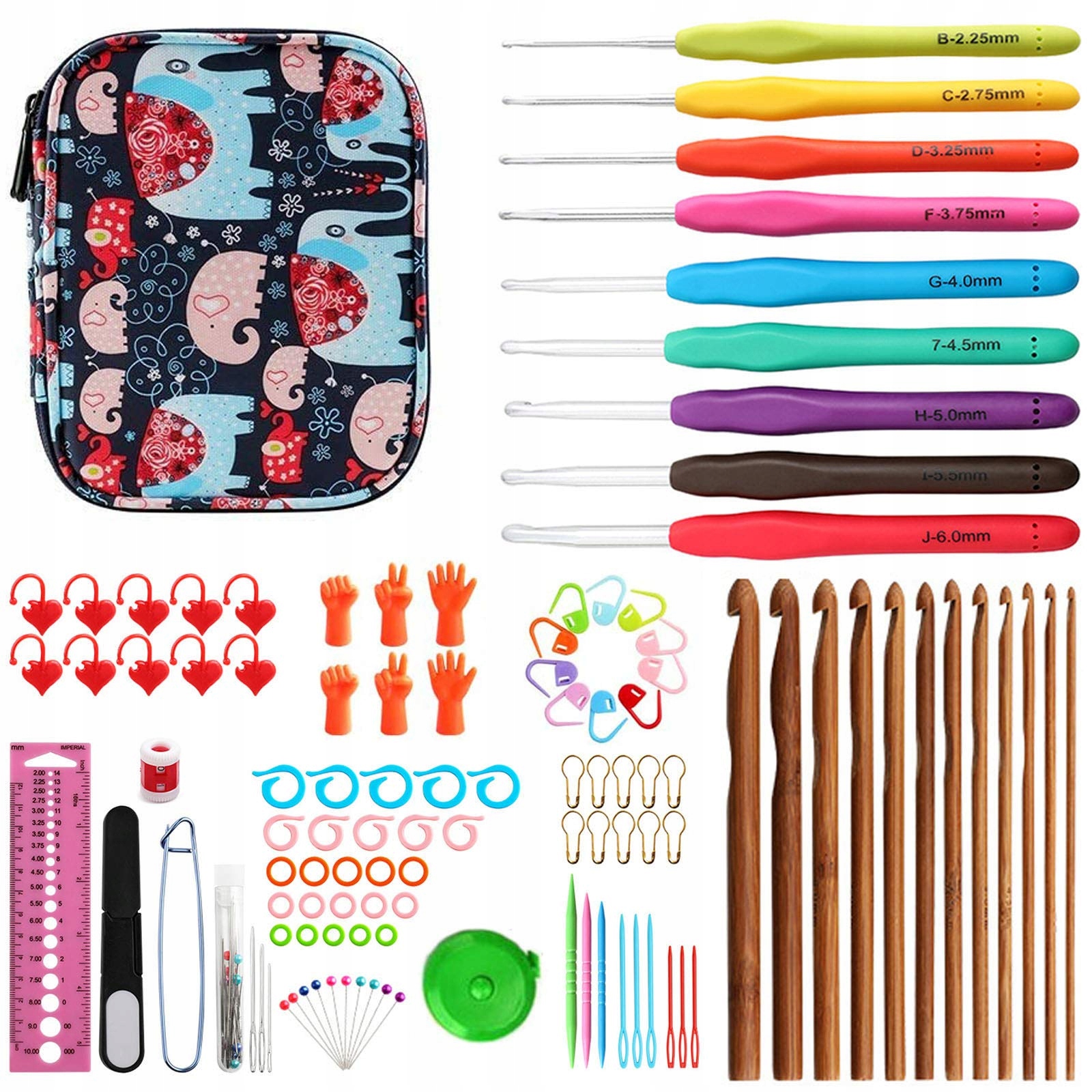 Принадлежности для вязания: Помимо крючков в набор входят и другие инструменты для вязания - 9 разноцветных крючков с мягкой ручкой, 12 бамбуковых крючков, 15 счетных колец, 10 пластиковых маркеров с разрезными кольцами, 10 красных сердечек. набор, 10 золотых булавок, 10 булавок для бисера, 6 пластиковых швейных игл, 6 чехлов для игл, 3 кабельных иглы, 3 стальные швейные иглы, 1 счетчик рядов, 1 алюминиевая булавка, 1 линейка, 1 х линейка, 1 держатель для петель, 1 ножницы, 1 футляр