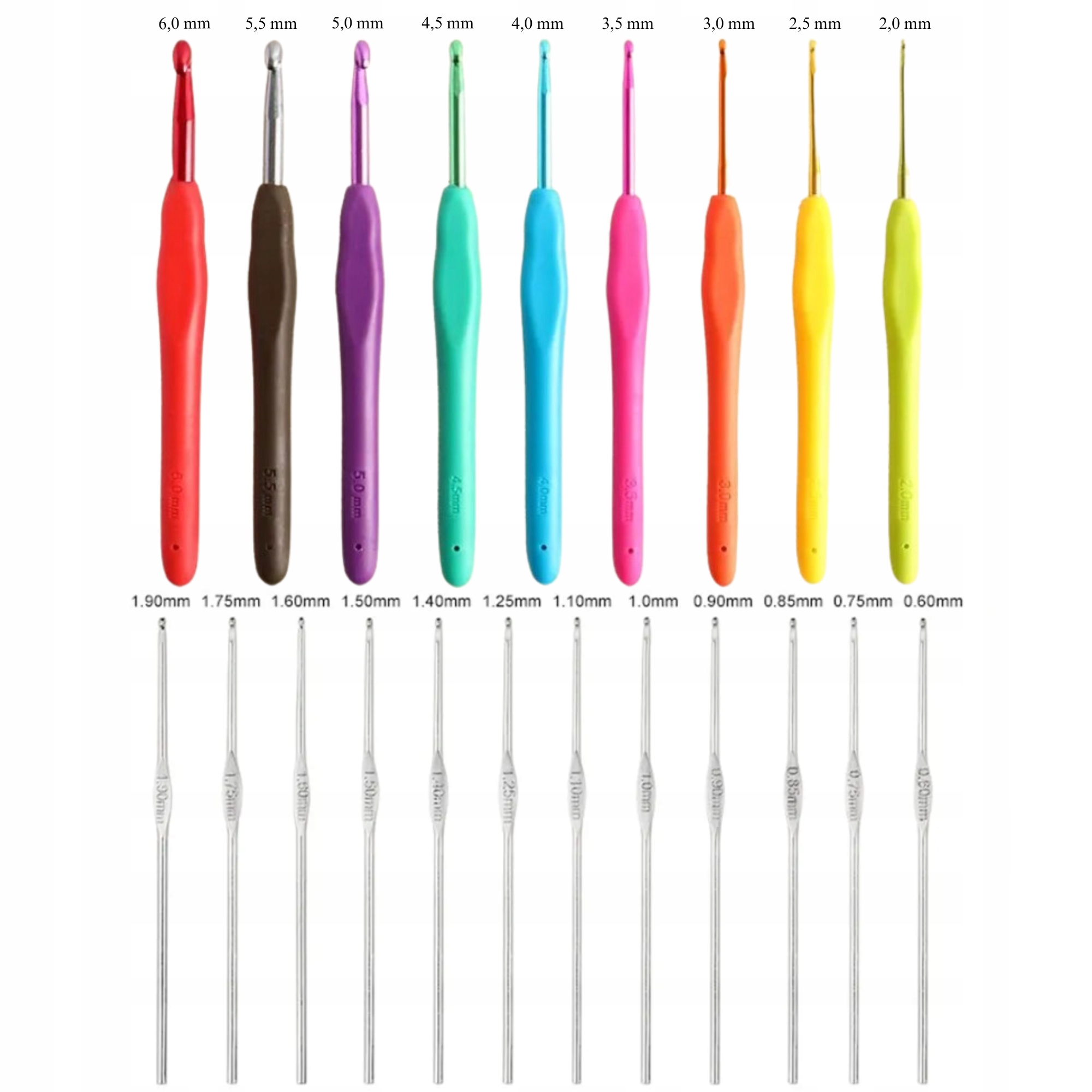 ✅НАБОР КРЮЧКОВ - большой выбор крючков разных размеров: меньшие размеры 0,6-1,9 мм, идеальны. для ажурных узоров и точной вышивки и больших размеров 2-6 мм, которые позволяют быстро создавать проекты с более крупными стежками.