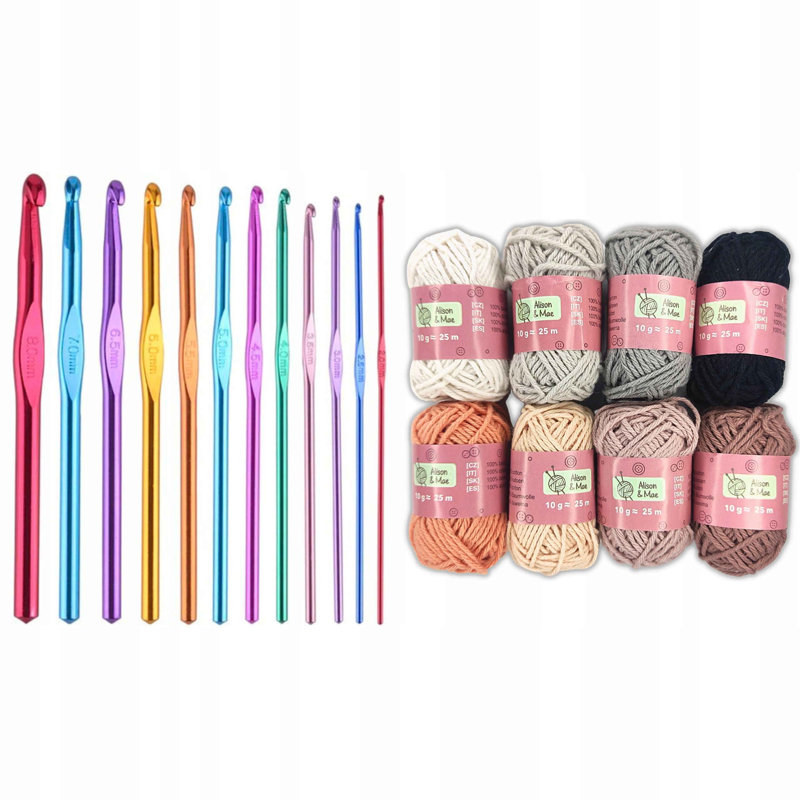 НАБОР ДЛЯ ВЯЗАНИЯ ИЗ ХЛОПКОВОЙ ПРЯЖИ 8 ЦВЕТОВ С 12 КРЮЧКАМИ