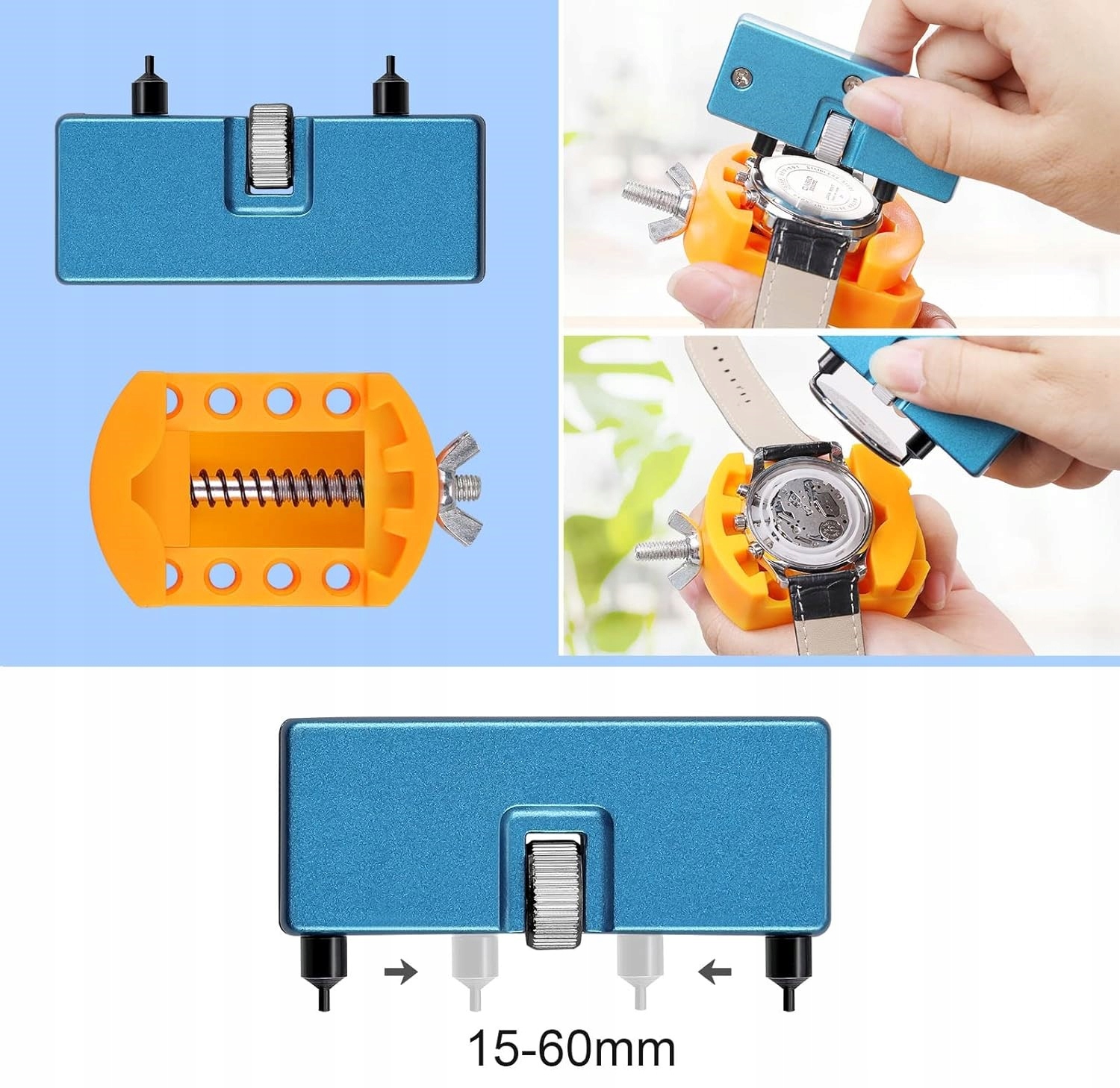 - ✅ Универсальное использование: Регулируемый открыватель подходит для большинства часов, спасибо с возможностью регулировки в диапазоне 15-60 мм.