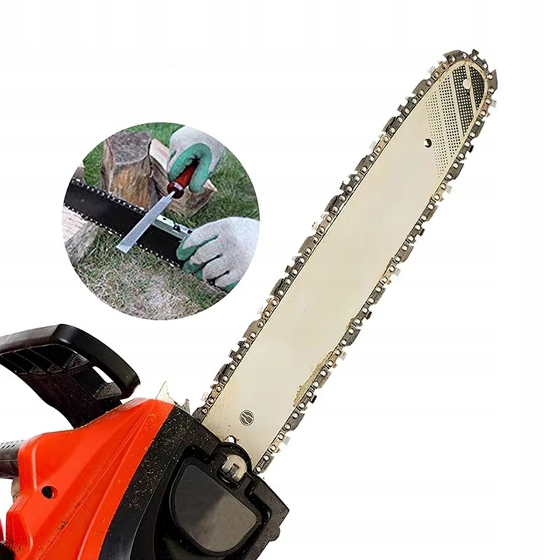 В комплект входят напильники для различных размеров бензопил - три круглых напильника диаметром 4,0 мм (5/32"), 4,8 мм (3/16") и 5,5 мм, что позволяет адаптировать инструмент к различным типам цепей и степени их износа.