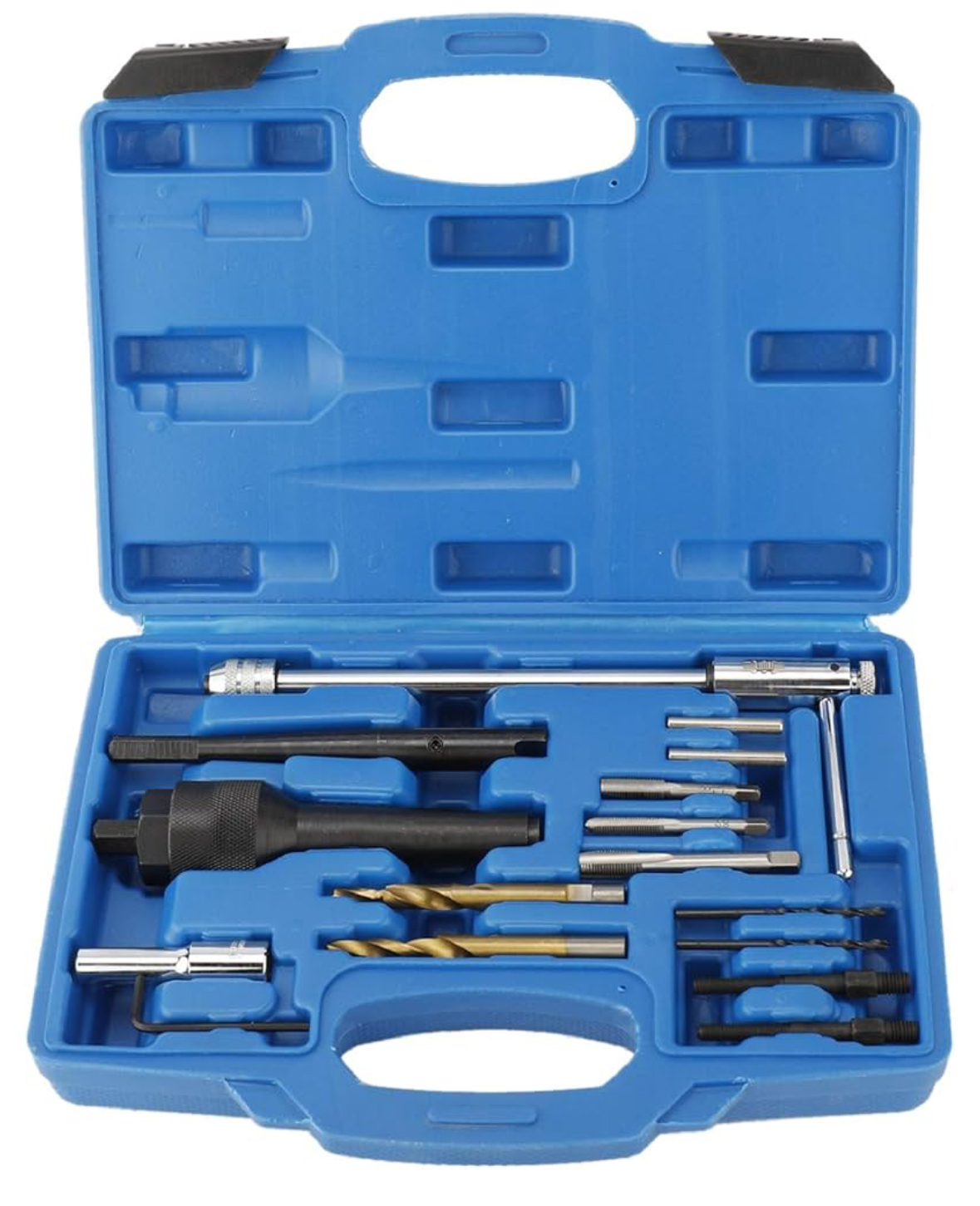Этот набор инструментов предназначен для точной разборки свечей накаливания и профессионального ремонта поврежденной резьбы свечей накаливания в дизельных двигателях. Идеально подходит как для профессионального, так и для домашнего использования.