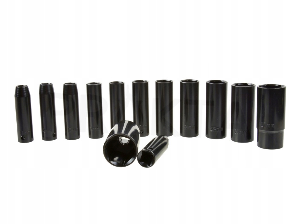 Набор шестигранных ударных головок длиной 1/2 дюйма, состоящий из 13 головок. Содержит ударные шестигранные головки размером от 10 до 30 мм.