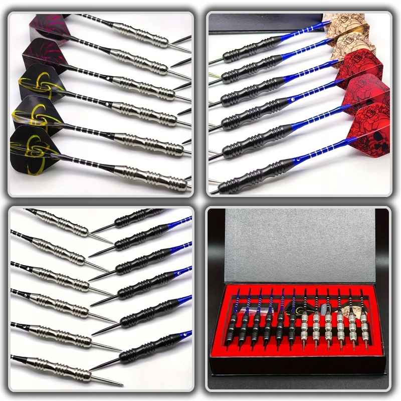 Набор из 12 дротиков – стальные наконечники + алюминиевый стержень + футляр – набор аксессуаров для дротиков