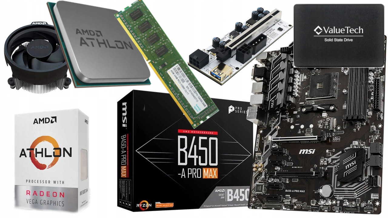 КОМПЛЕКТ ЭКСКАВАТОРА ДЛЯ 6 ЦП 6xRISER RAM SSD ETH КАРТ