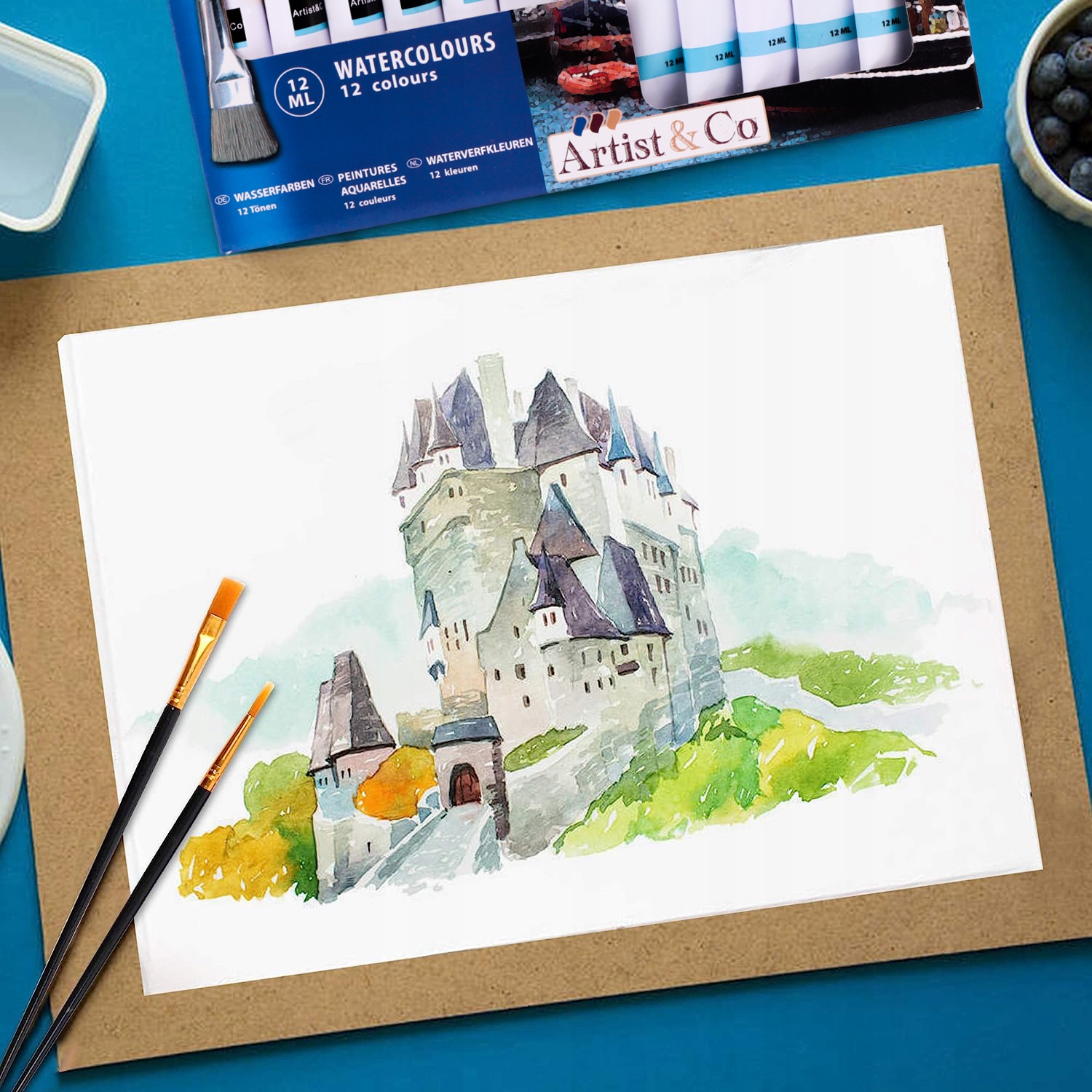 ✔️ 12 тюбиков акварельных красок — обеспечивают разнообразие цветов и позволяют создавать различные эффекты в работе.