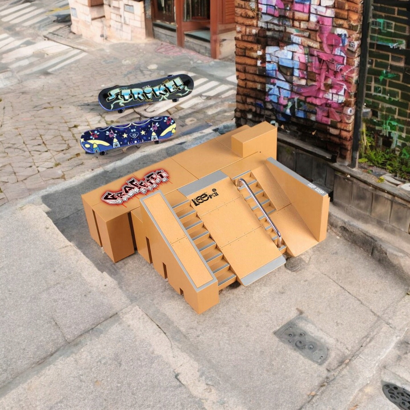 Набор состоит из модулей 5 , которые позволяют создавать скейтпарк в соответствии с собственными предпочтениями .