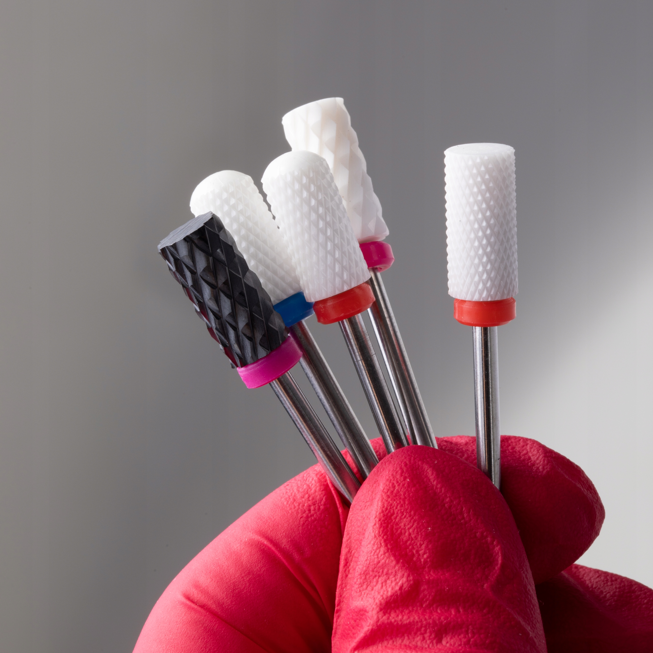 Фрезы для кутикулы различной формы помогут удалить эпителий и разработать околоногтевые валики, а цилиндрические фрезы — безопасно удалить гель или акриловую массу