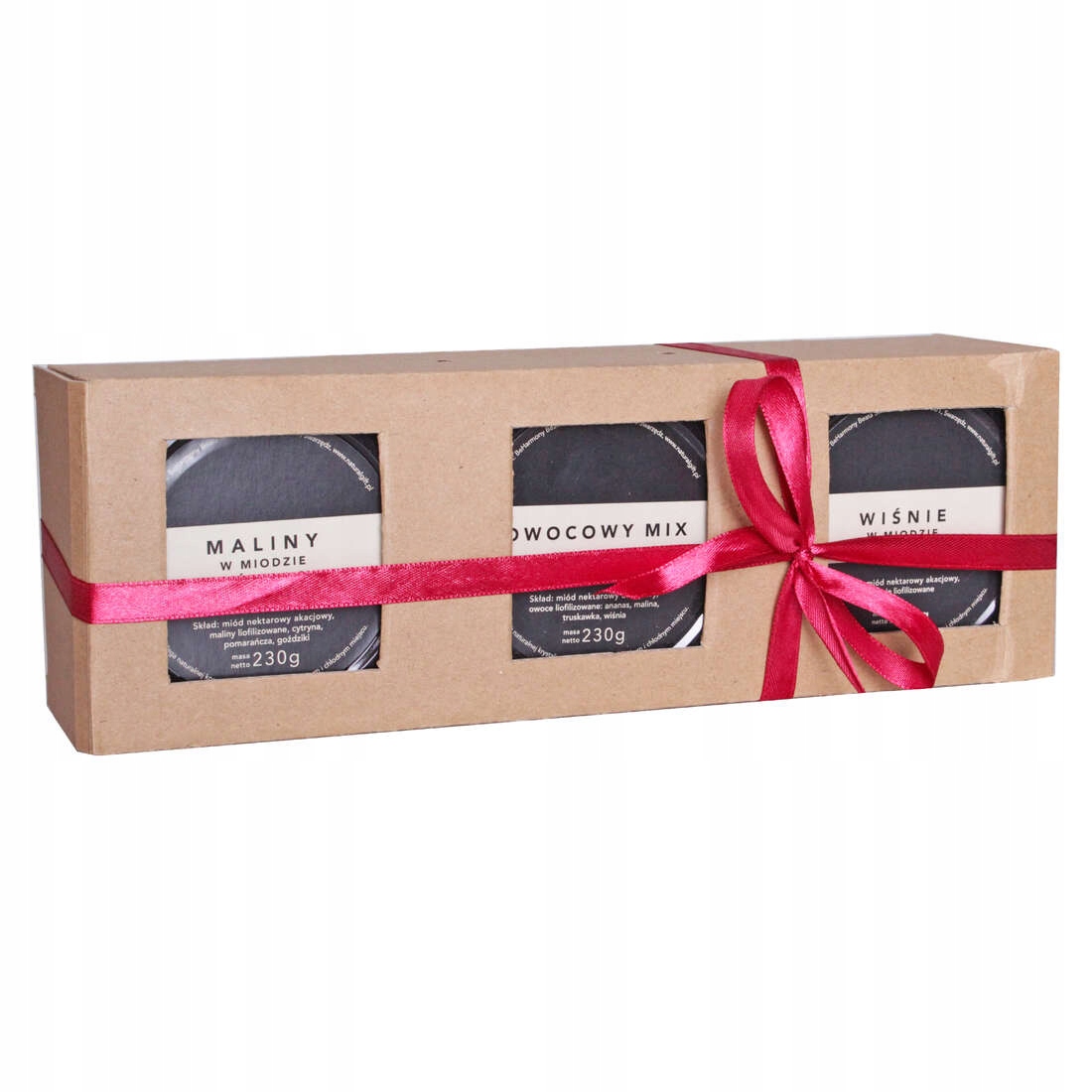 Набор, состоящий из 3-х разных фруктов в меду: малины, вишни и фруктового микса.