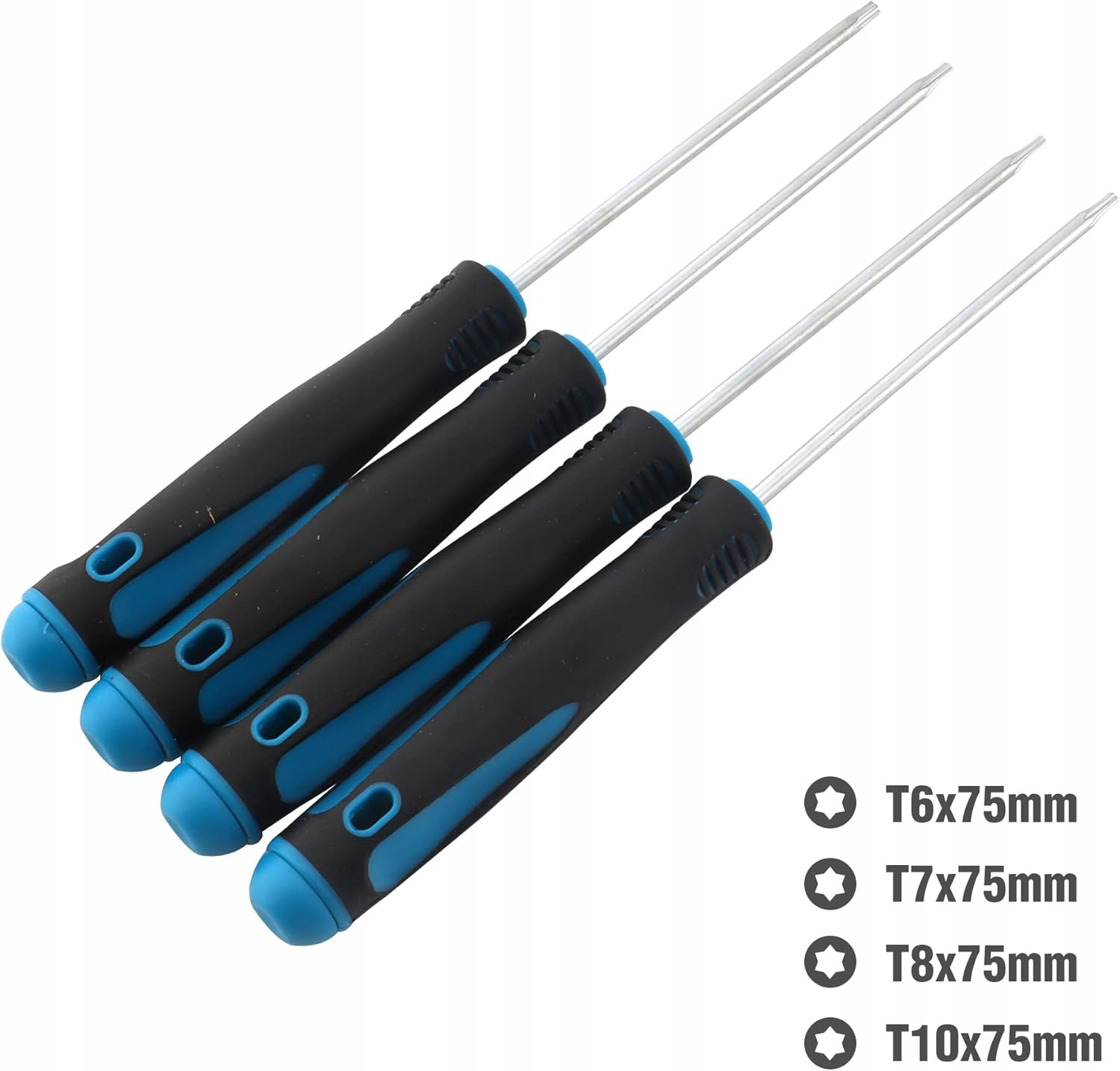 Эргономично разработанные ручки обеспечивают комфорт, сцепление и точность работы. Торксные отвертки, четыре крючка с пещерой различной формы.