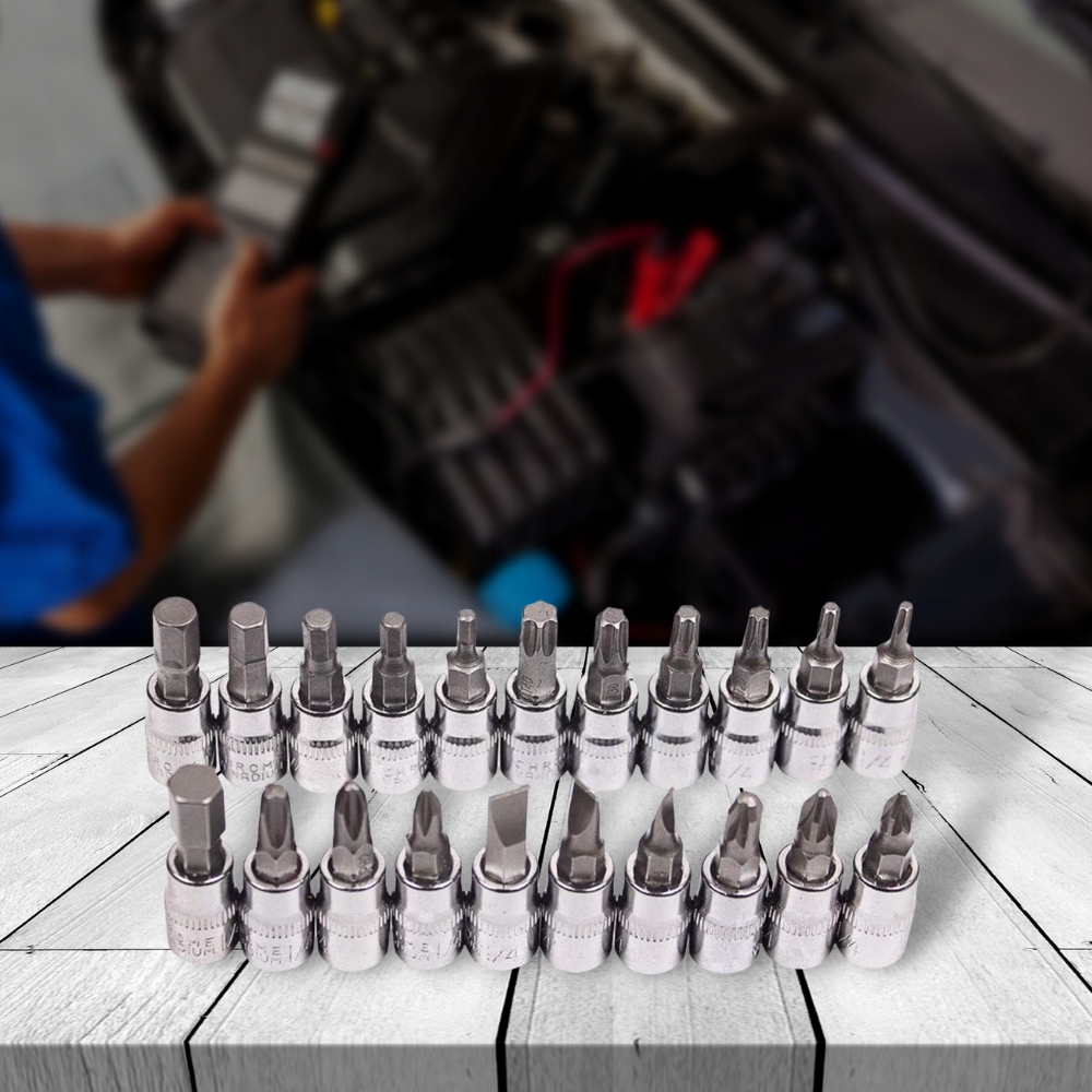 - 13 шт. Головки 1/4": 4 ; 4,5; 5; 5,5; 6; 7; 8; 9; 10; 11; 12; 13; 14 мм