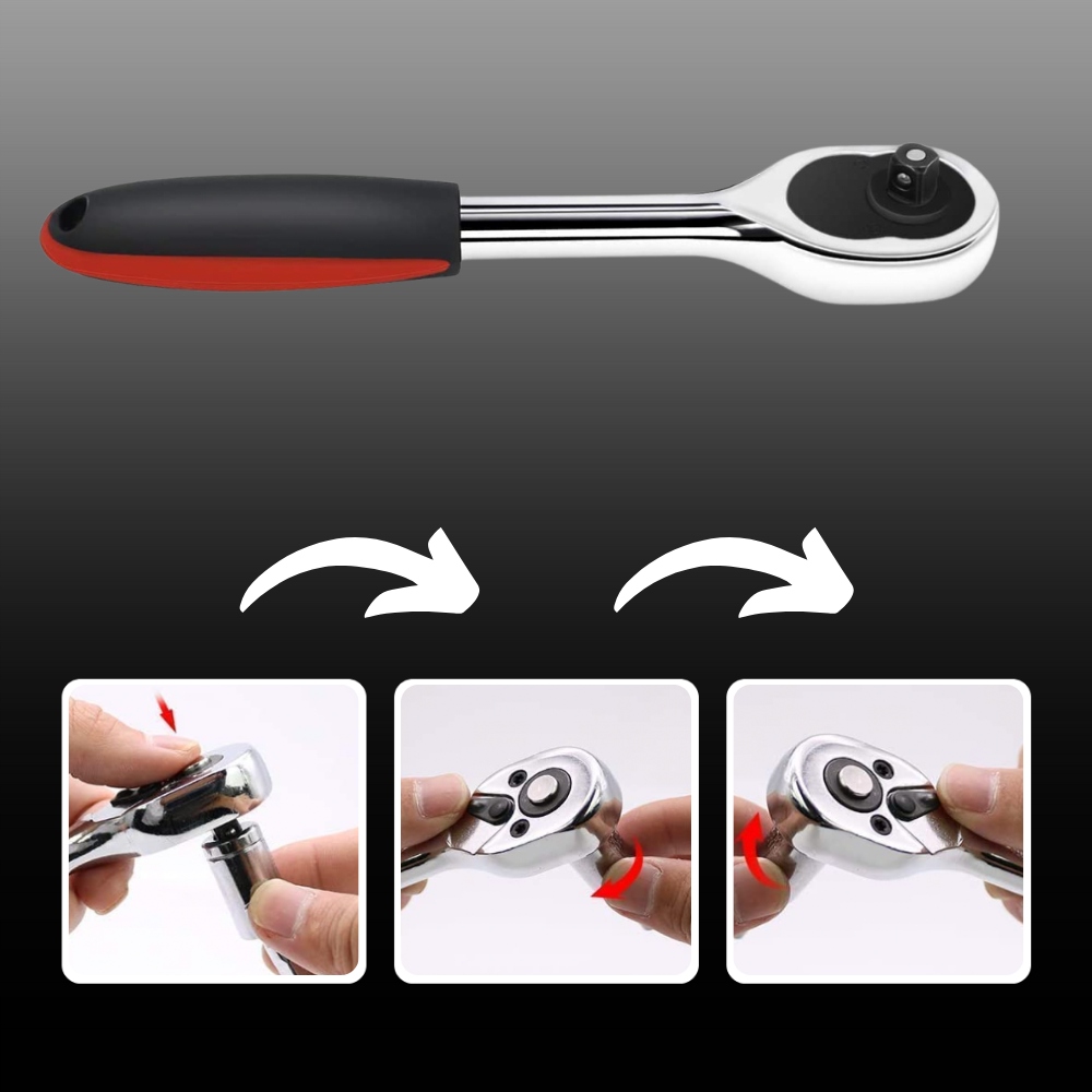 В наборе имеется множество головок, насадок для отверток, удлинителей (в том числе гибкий), 2-х видов ручек - отверточной и продольной, кардана, переходника и трещотки с трещоткой. переключатель, позволяющий быстро и легко менять направление вращения. Каждый из удлинителей, ручек, храпового и карданного шарнира оснащен шариком, предотвращающим выпадение прикрепленной головки - это повышает эффективность работы и влияет на комфорт и безопасность, ни одна головка не выпадет во время работы.