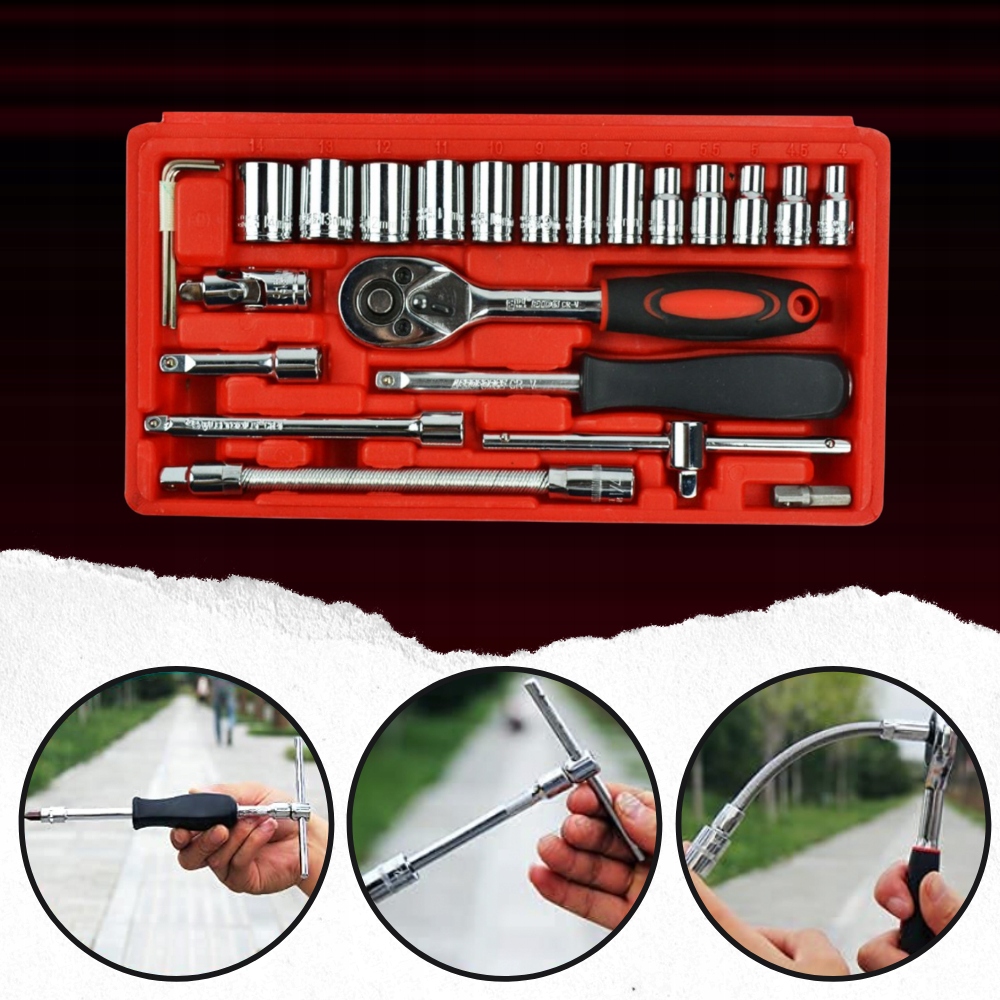 Кейс позволяет безопасно хранить,каждый элемент имеет свое описанное место, поэтому найти подходящую розетку или ключ не составит проблемы, и все вещь не потеряется.
