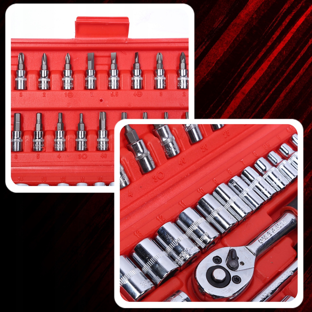 НАБІР ГАЙКОВИХ КЛЮЧІВ 46 шт. ВИВІРТКИ TORX АЛЮМІНІЄВИЙ КОРПУС