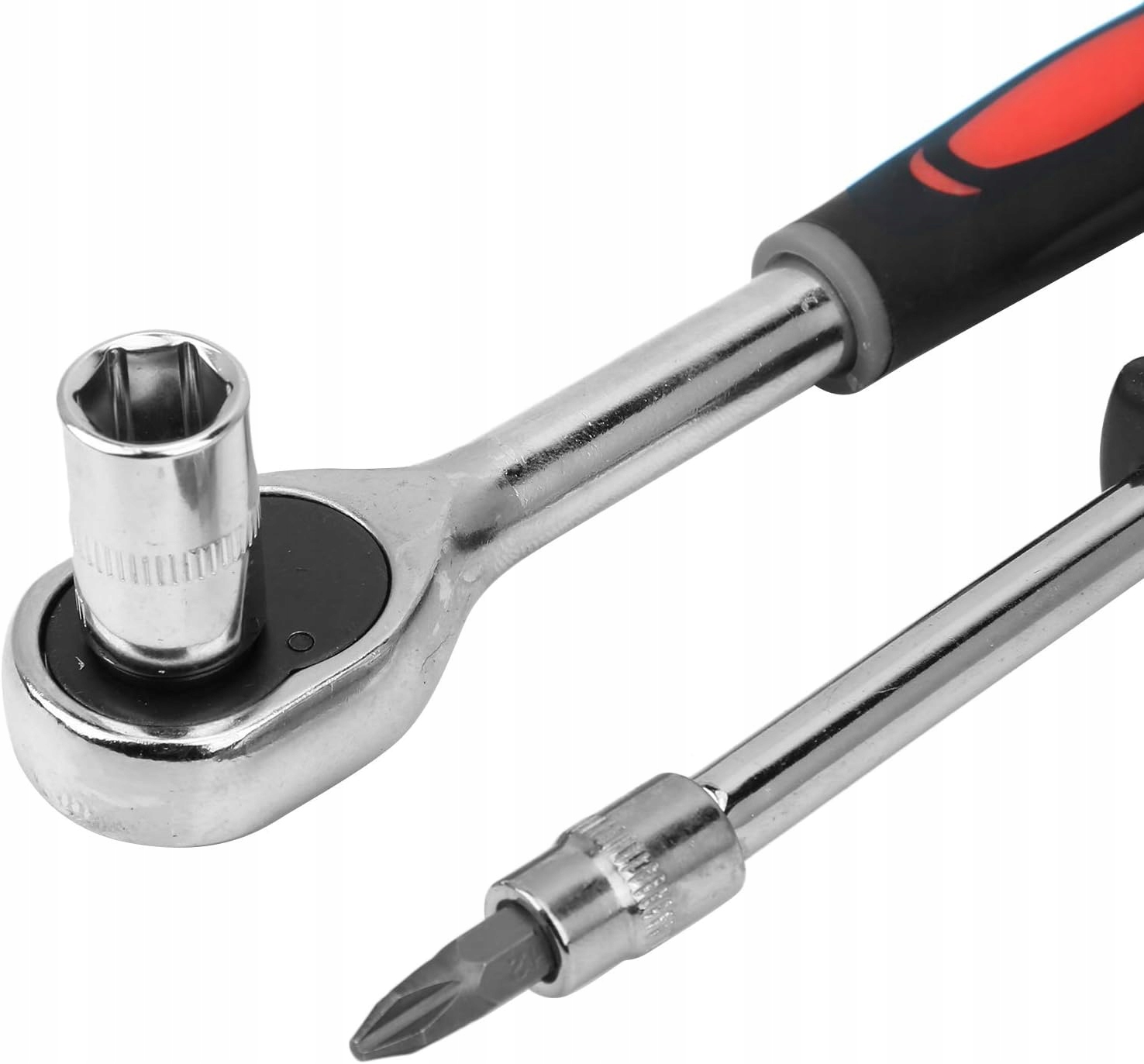 Трещотка идеально подходит для торцевых ключей и инструментов. Он оснащен шаровой защелкой, которая играет важную роль безопасности во время монтажных работ, поскольку обеспечивает надежную фиксацию торцевых ключей и аксессуаров