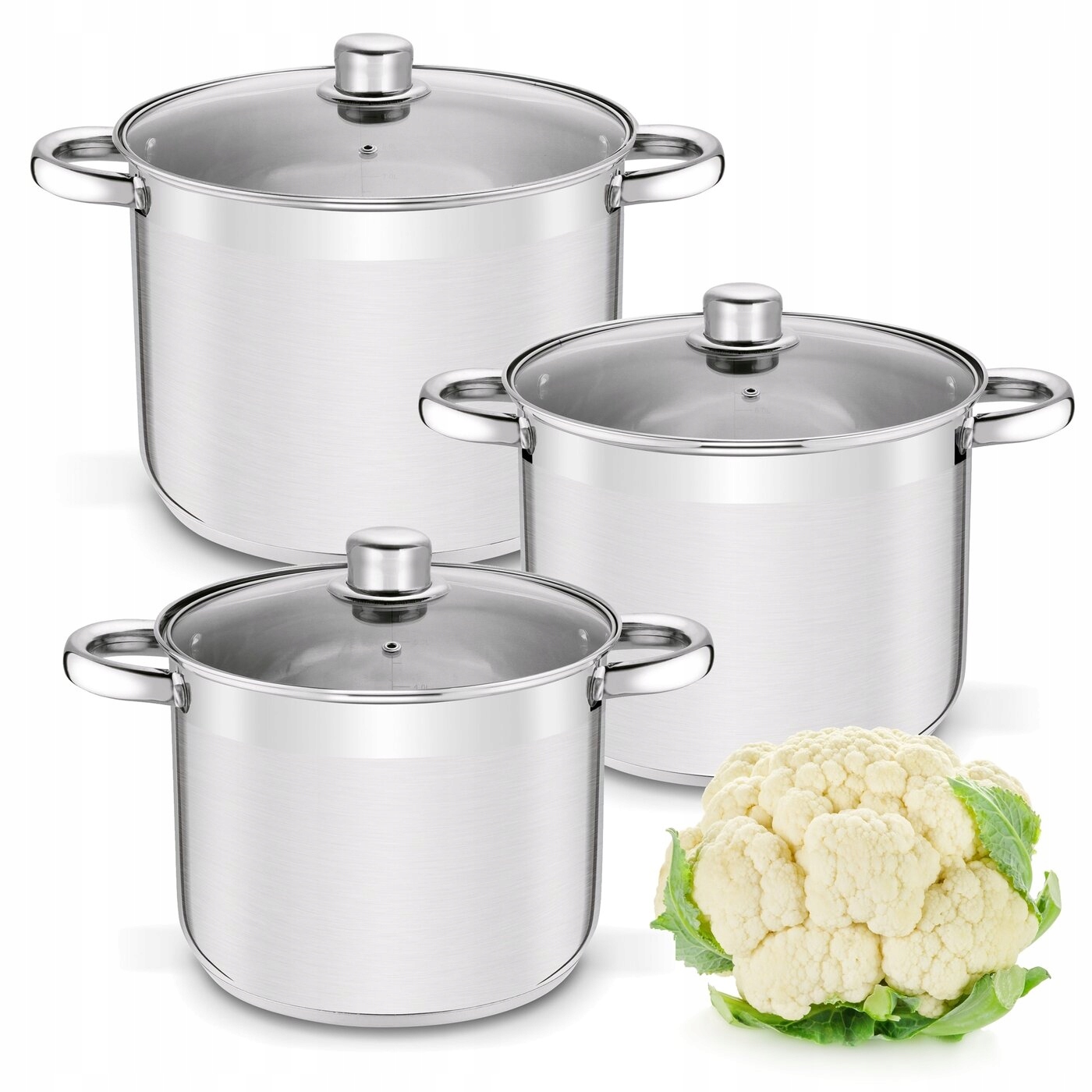 В комплект входит: - кастрюля с крышкой 6,5л, - кастрюля с крышкой 8л, - кастрюля с крышкой 10л