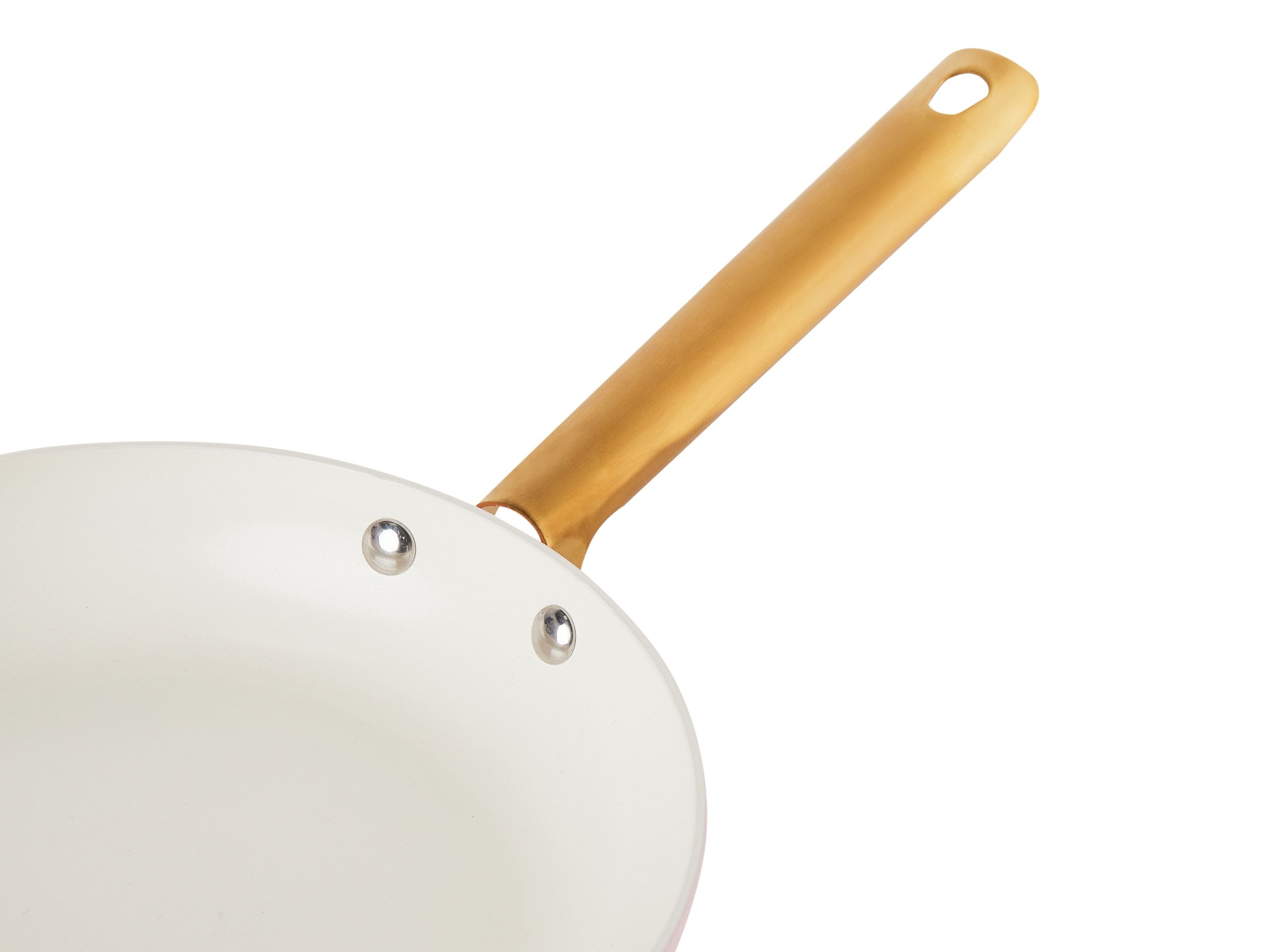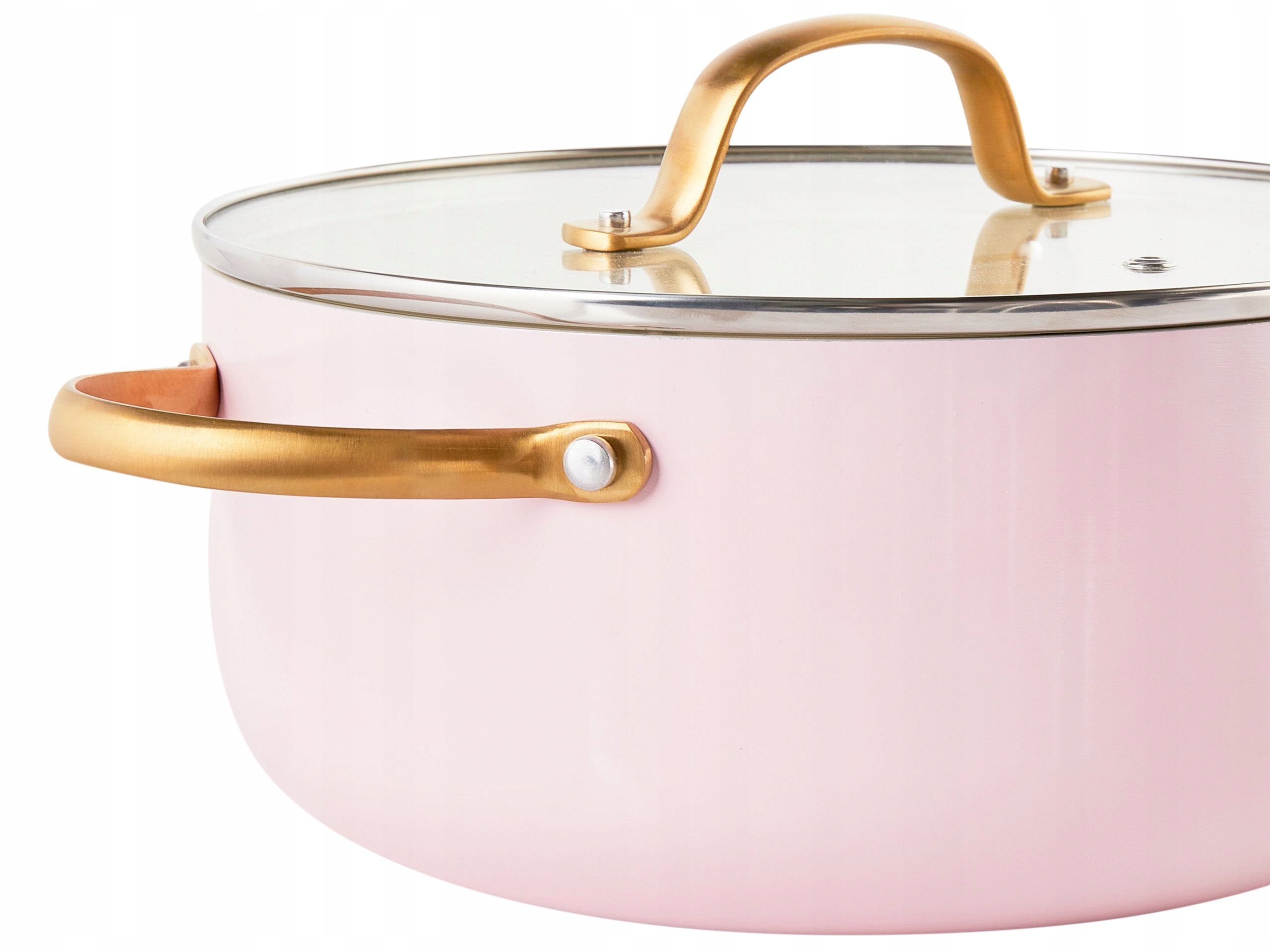 Введите дыхание свежести в свою кухню благодаря алюминиевому набору горшков и сковороды в нежном пастельном розовом со стильными, золотыми ручками. В съемочной площадке вы найдете 3 кастрюлю с крышками, оборудованными вентиляционными отверстиями и универсальной кастрюлей - идеально подходит для повседневной приготовления. Керамическое покрытие предотвращает прилипание, что облегчает приготовление здорового питания и быстро мытье. Блюда адаптированы ко всем видам плитов, а возможность использовать их в духовке дает еще более кулинарное вдохновение. Это практичный и красивый набор, который будет работать на каждой кухне.