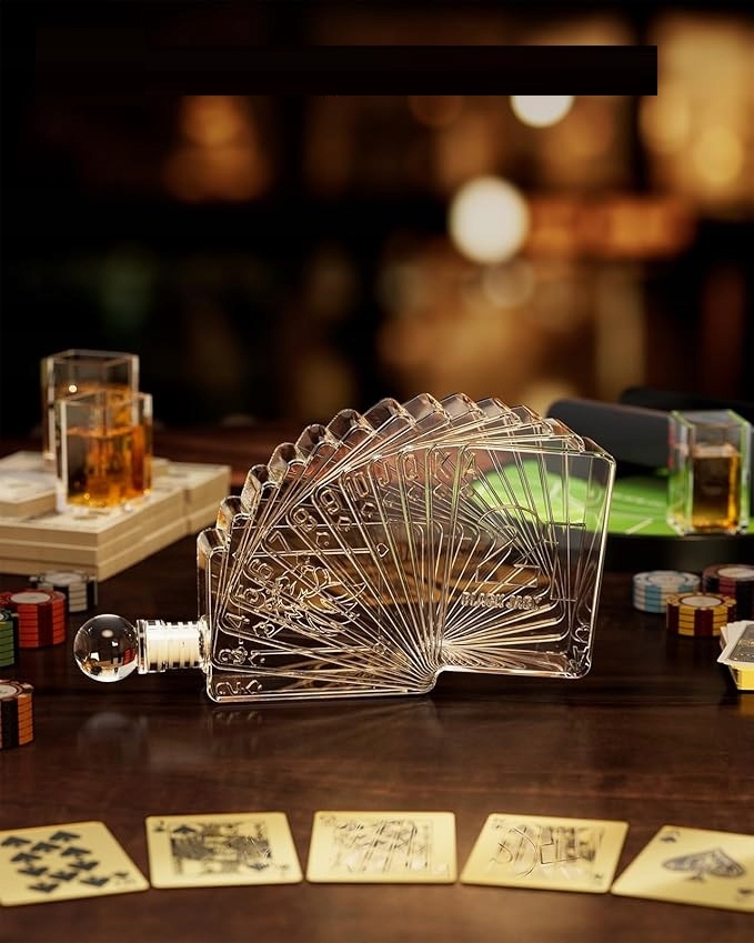 - Улучшите свои впечатления от питья: Улучшите свои впечатления от вечернего питья с помощью этого изысканного графина, вдохновленного блэкджеком. Созданный с изысканностью, он не только излучает роскошь, но и обогащает ваши впечатления от питья с каждым наливом. Ваши лучшие духи теперь найдут роскошный дом, который идеально дополнит их элегантность, гарантируя, что каждый глоток станет необыкновенным путешествием удовольствия, как никто другой.