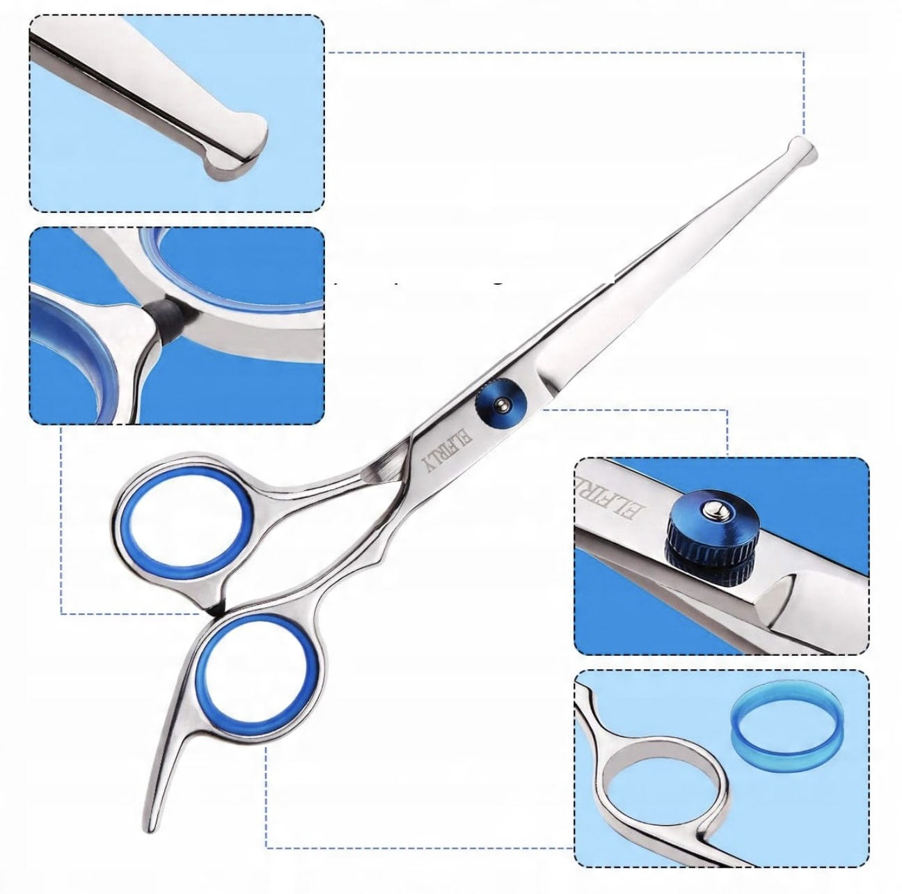 Наличие разных пар ножниц разной длины и формы позволяет точно подстричь собаку. В набор входят какболее длинные ножницы, которые можно использовать для быстрой стрижки длинных волос, так и более короткие ножницы, которые идеально подходят для более детальной работы, например, стрижки вокруг ушей и лап.