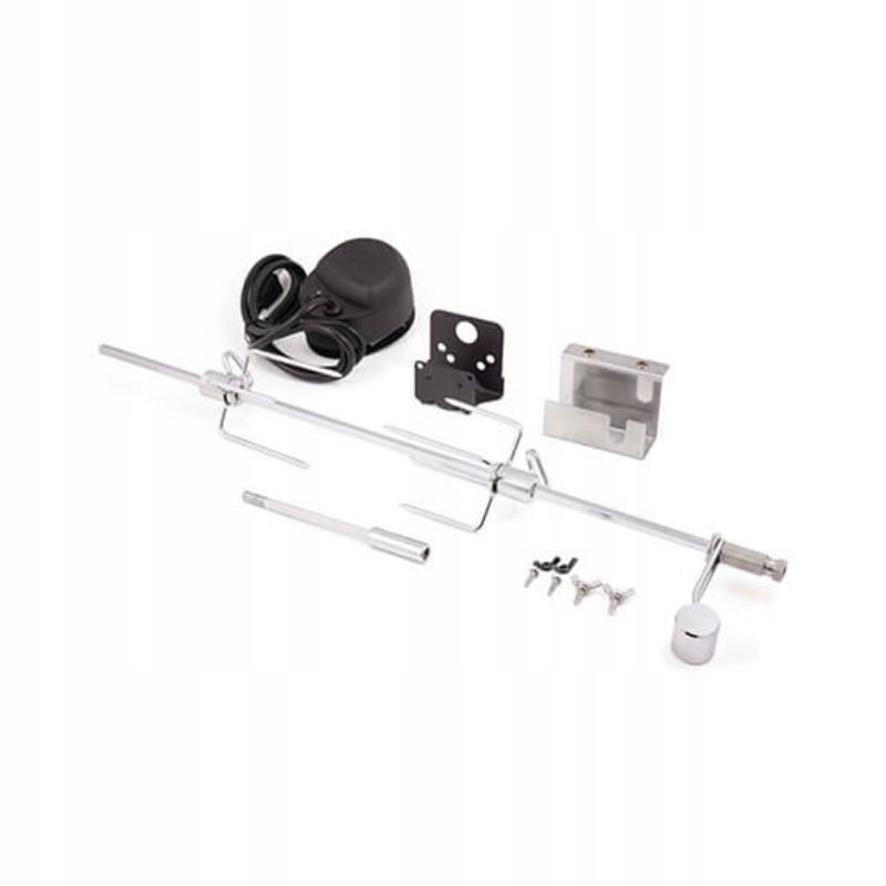 Набор вращающихся вертела, состоящий из стержня гриля, противовеса, стальных шипов, электродвигателя и набора монтажных кронштейнов. Обжарка на гриле гарантирует неповторимый вкус без риска пригорания. Запеченная курица внутри нежная и сочная, а кожица золотистая и хрустящая.