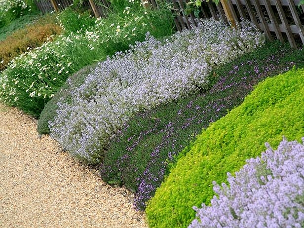 Они невысокие, стелются и растут вбок, быстро создавая, так же, как и трава, компактный и плотный ковер, среди которого трудно расти сорнякам.