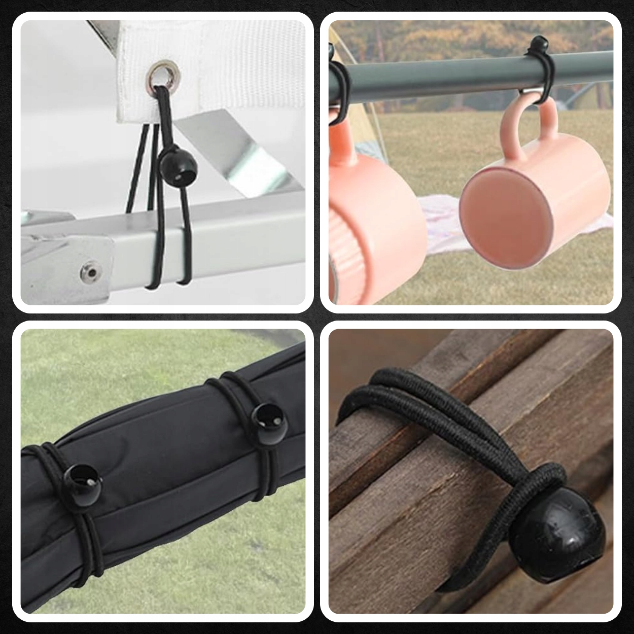 10х КРЕПЕЖНЫХ РЕЗИНОВ ДЛЯ СБОРКИ ПАЛАТКИ, БРЕЗЕНТА, ГАМАКА, КАЧЕШЕЙ С ШАРОМ