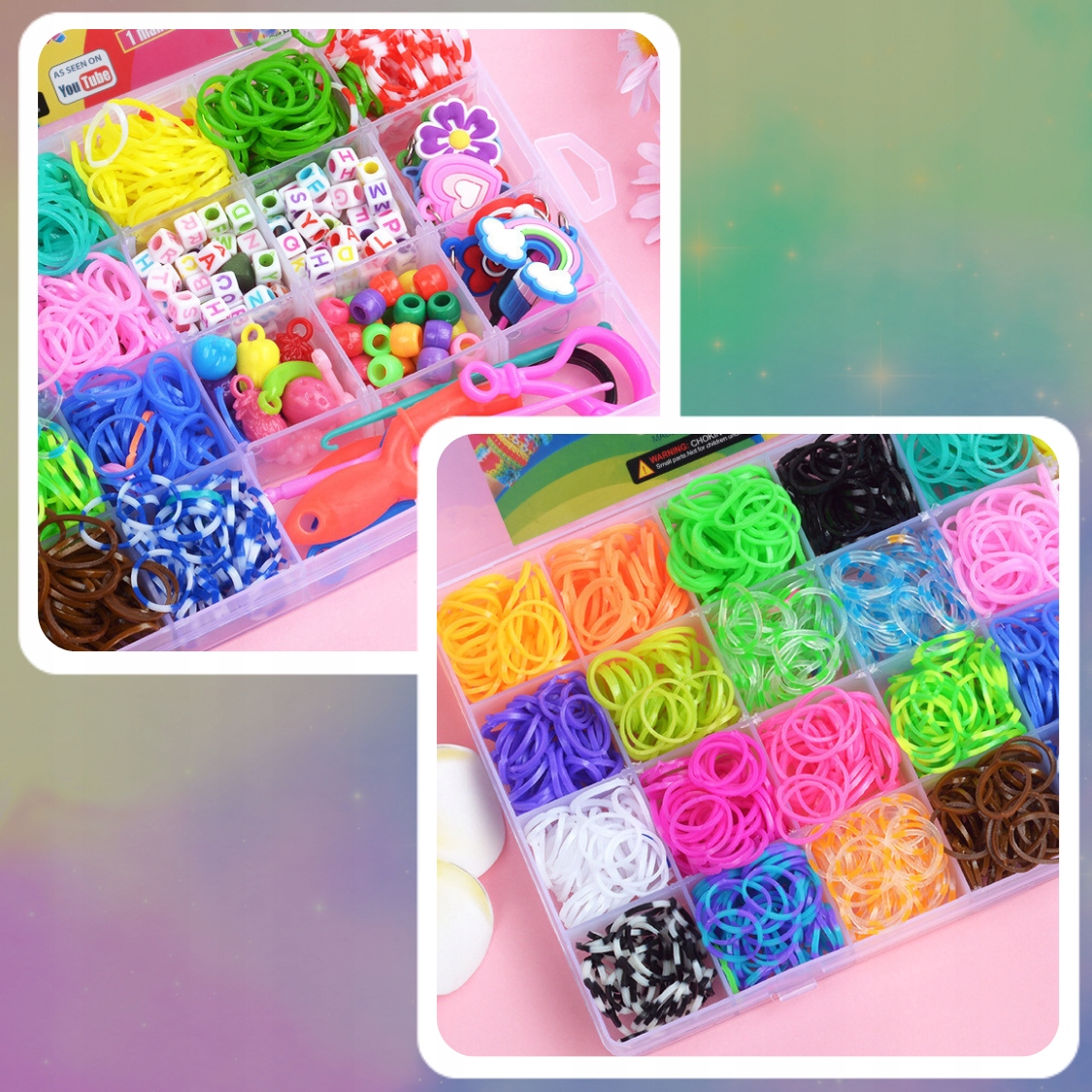 Предлагаем набор из более чем 1500 штук резинок для создания собственных браслетов, которые позволят создавать оригинальные и неповторимые произведения искусства! Набор упакован в удобную коробку с отделениями, которая позволит легко хранить и систематизировать все элементы.