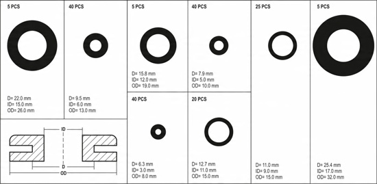 Набор резиновых прокладок 180 шт, смесь YT-06878