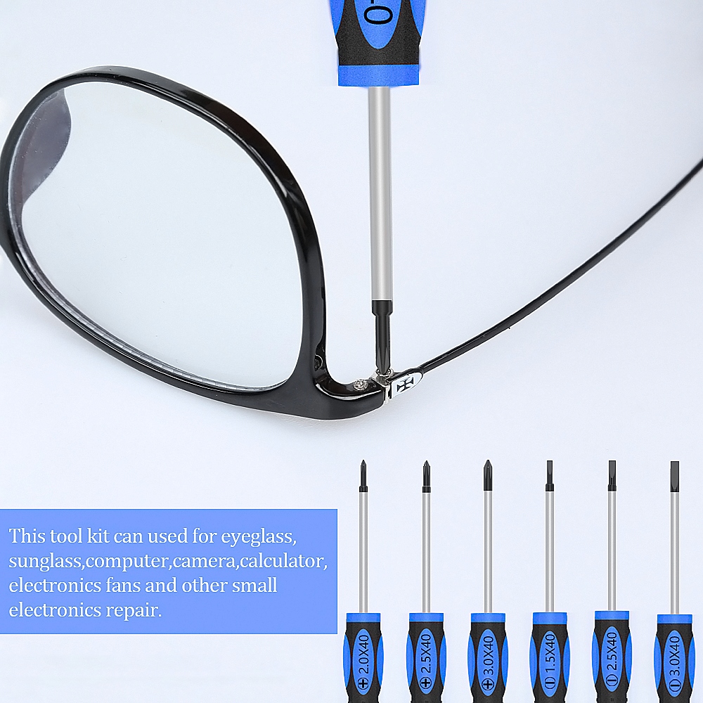 В комплект входит набор из 6 прецизионных отверток, предназначенных для ремонта электроники.