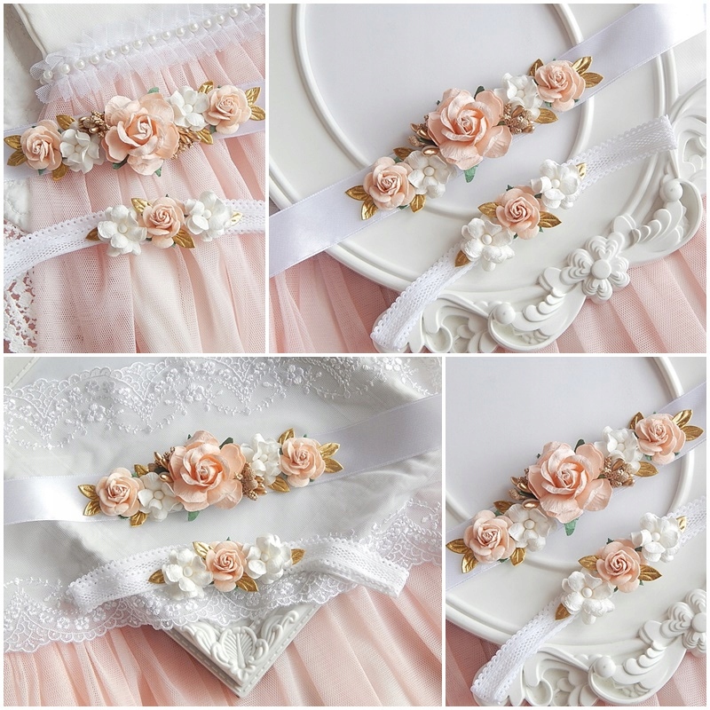 Набор крещения розы, повязка на голову и ремешок для платья
