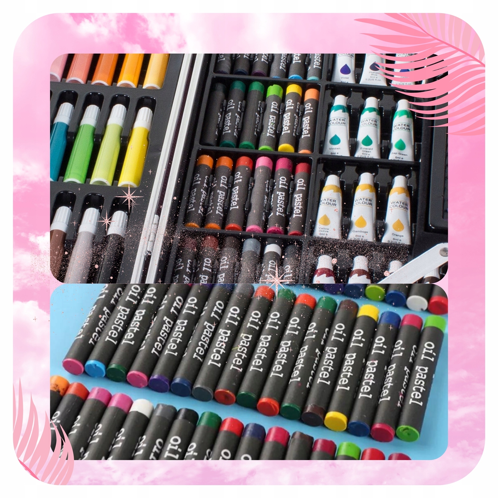 - Комплексный набор: Содержит до 145 элементов, включая масляную пастель, цветные карандаши, тонкие маркеры, акварельные краски, акриловые краски, кисти и множество других аксессуаров, что позволяет универсально использовать художественная деятельность