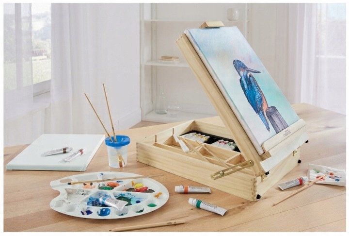 - Настольный мольберт в чемодане – удобное решение для рисования.