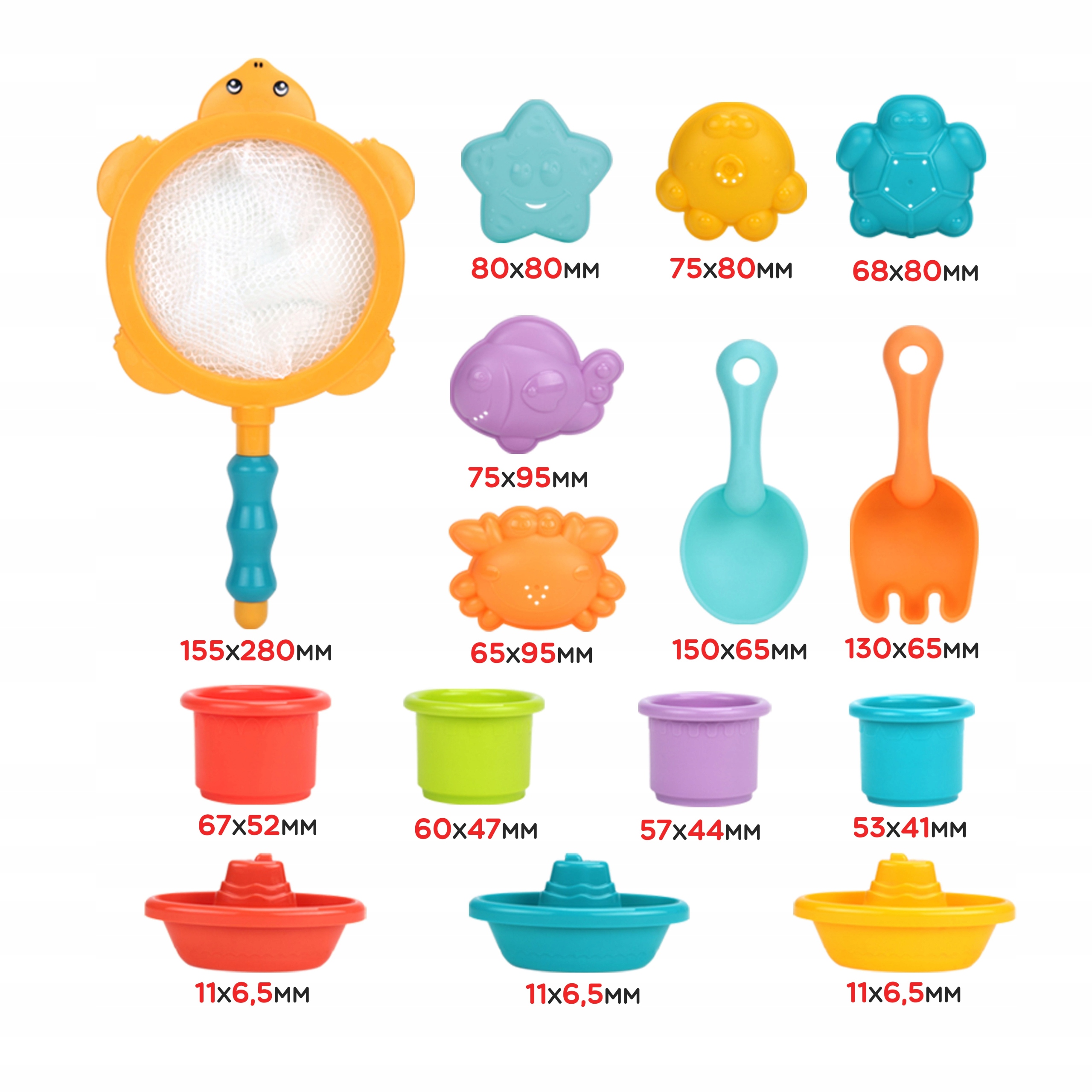 Набор водных игрушек от бренда WOOPIE станет отличным дополнением к ванне вашего ребенка. Набор можно использовать как для купания, так и для игр в песке. В комплект входят: сетка для рыбалки; 3 лодки; 4 чашки, которые можно собрать вместе; 5 формочек/переливных стаканчиков в зависимости от того, в воде или песке и 2 лопаточки. Играя в воде, ребенок может проводить множество различных экспериментов во время купания! Набор не только сделает более приятным времяпрепровождение во время купания или игры в песочнице, но также разовьет у ребенка мануальные навыки и разовьет понимание окружающего мира. б> и, прежде всего, позвольте ребенку сконцентрироваться и позаботиться о нем во время мытья.