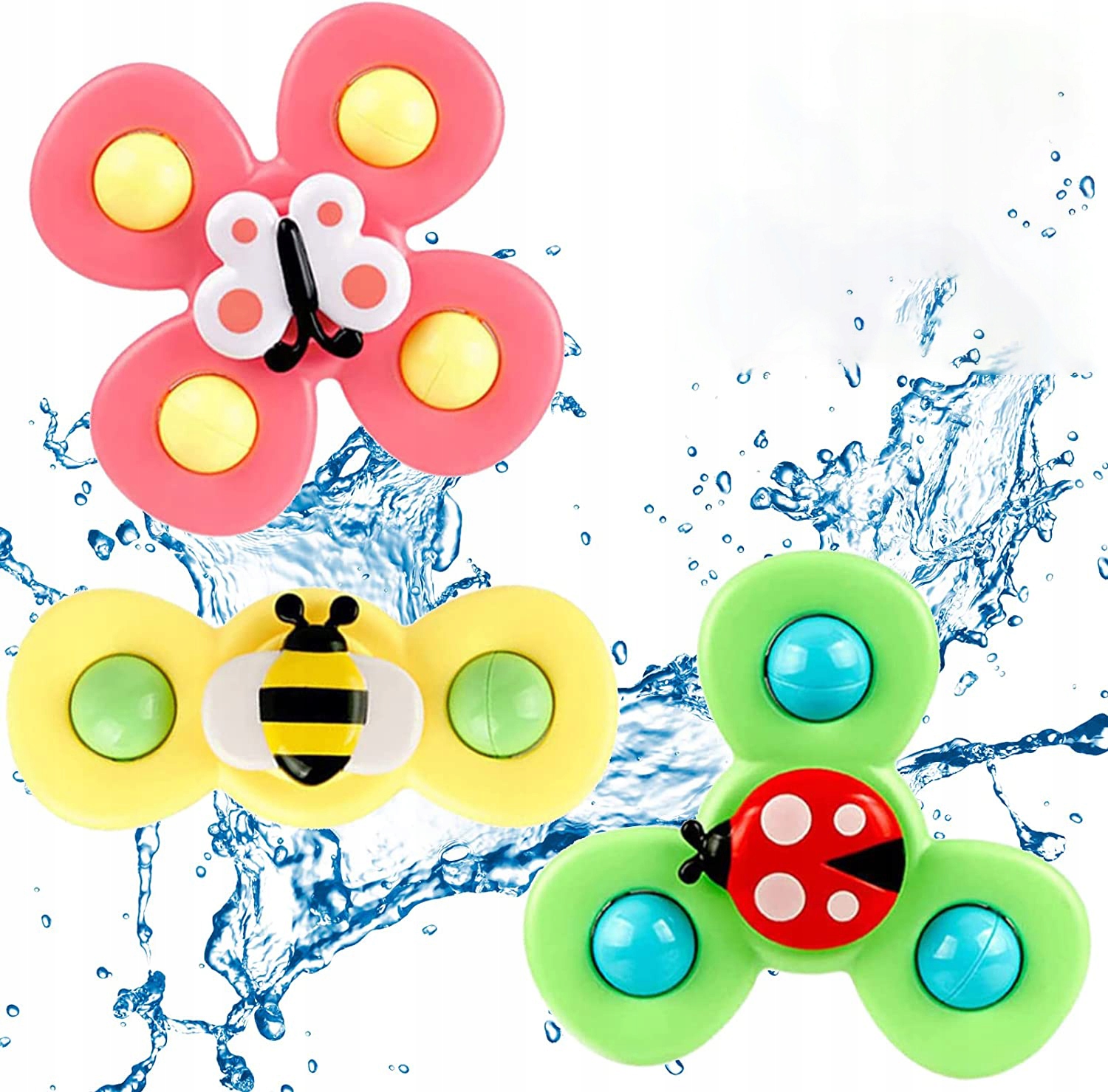 ⭐ В набор входят 3 штуки спиннеров трех разных цветов. Спиннеры можно брать с собой куда угодно и прикреплять куда угодно благодаря резиновым присоскам. Игрушку можно прикрепить как к окну во время путешествия, так и к ванне во время ванны (игрушку можно замачивать).