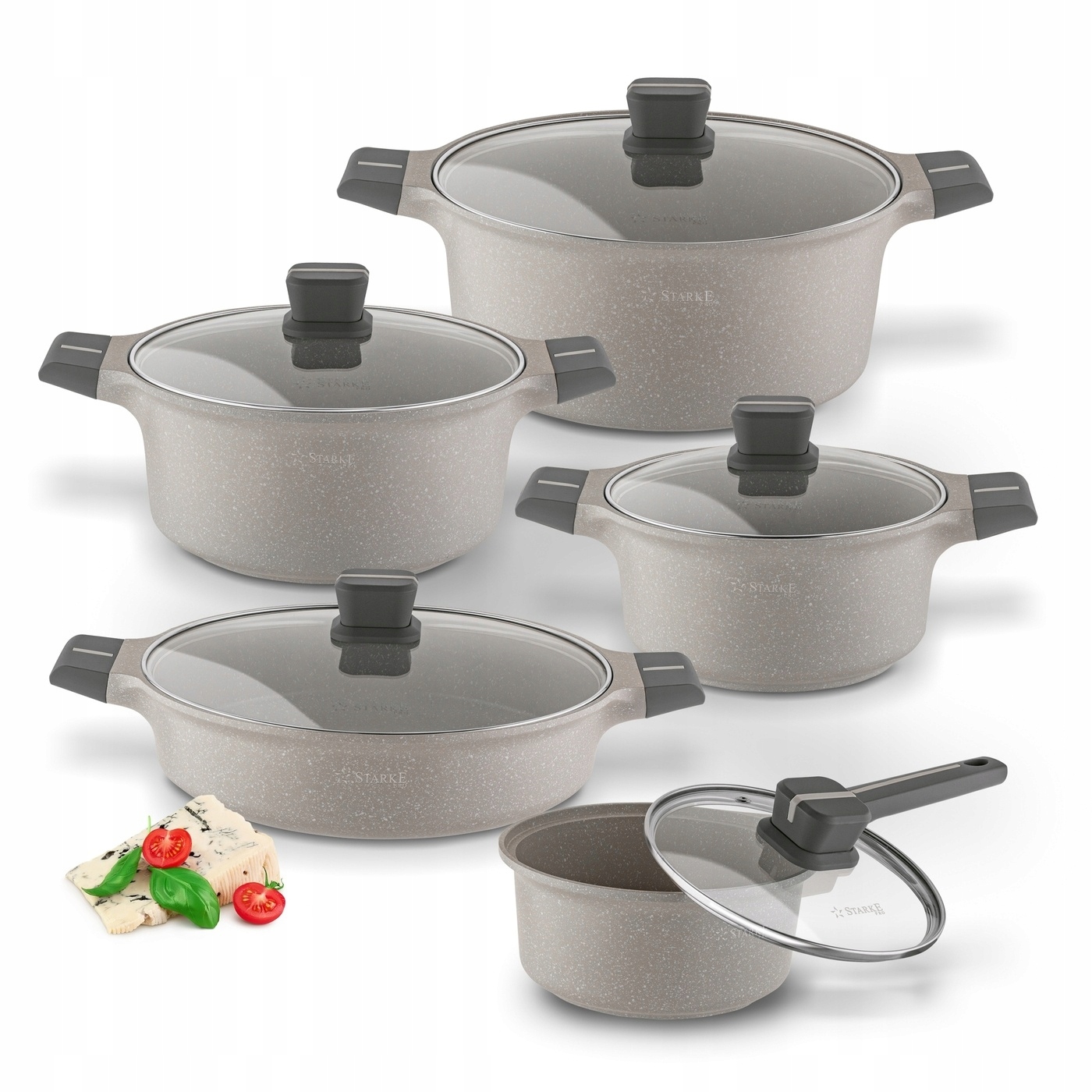 starke pro Conemware 10 Elements Set использует неприемное покрытие, которое облегчает заботу (не посудомоечная машина, но ручная промывка). Набор твердый и позволяет безопасному приготовлению и жарке, снижая риск ожоговых рук. В наборе вы найдете блюда с емкостью от 1,8 до 7,5 литров. Стеклянные крышки со стальным краем были прикреплены к кастрюле, кастрюли и кастрюли, защищая от сколов. У них также есть стильные мягкие сенсорные ручки, которые не нагреваются и не скользят в руке. Вы можете готовить с набором горшков, кастрюлю и сковороды на каждом типе плиты. Элегантность добавляется мраморным покрытием Non -Stick Marbel Plus, которое выдержит много циклов истирания (10 000!) И отделочив алюминиевый лист и очень хорошо сбалансирован. Они быстро нагреваются, поэтому вы сэкономите время и энергию. Они великолепны на семейной кухне или в подарок. Они также хорошо защищены от высокой температуры и равномерно проводят тепло. Они обеспечивают определенную сцепление при переносе. PFOA Free -это обозначение их безопасности и неоксической структуры для окружающей среды. Посол бренда и профессиональный шеф -повар, Петр Кучарски, рекомендует выбрать этот набор. По его мнению, поддерживаемые личными тестами, он заслуживает высочайшего качества и оценки функциональности. Набор каменных керамовых изделий из бренда Starke Pro покрыт 5-летней гарантией!