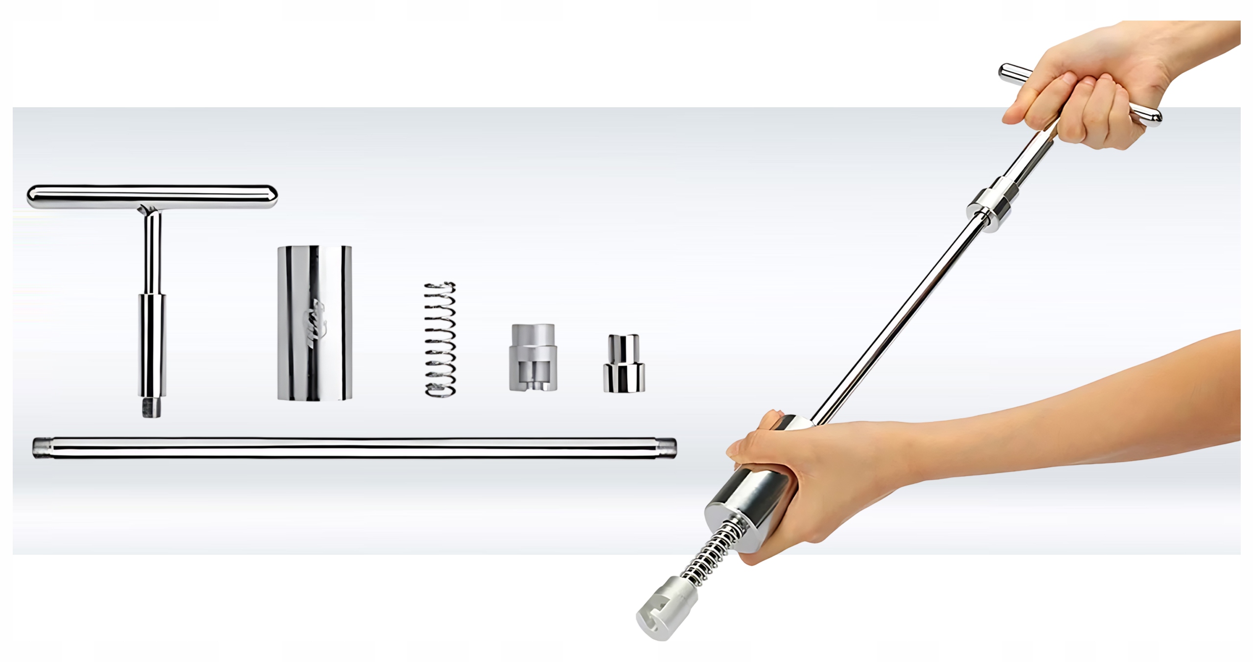 После сборки Т-образная рукоятка готова к работе — ее можно использовать отдельно или в составе набора с инерционным молотком. Благодаря прочной конструкции он обеспечивает надежный захват и точное удаление вмятин.